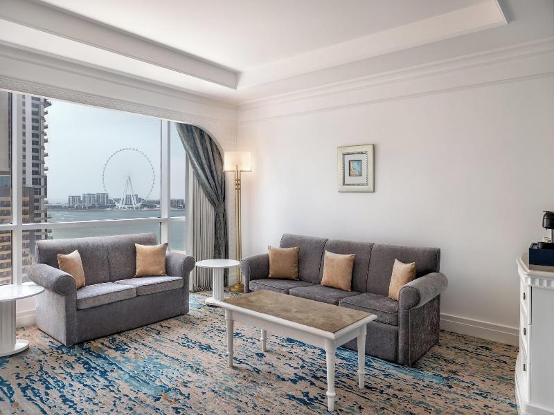 Consiéntete con una visita al spa, que ofrece masajes, tratamientos corporales y faciales. Después de un chapuzón en una de las 2 piscinas al aire libre, puedes pasar un rato en la playa privada. Este hotel también ofrece acceso inalámbrico a internet de cortesía, servicios de conserjería y tiendas de regalos/quioscos de prensa. Come algo en Luciano's, uno de los 8 restaurantes del hotel, o quédate y aprovecha el servicio a la habitación las 24 horas. Relájate con una bebida refrescante en el bar de playa, el bar junto a la piscina o en uno de los 2 bares/salones. Se sirve desayuno tipo bufé todos los días con cargo adicional. Entre los servicios destacados se incluyen acceso a internet por cable de cortesía, un centro de negocios y servicio de limusina/coche con chófer. Hay valet parking gratuito disponible en las instalaciones. Siéntete como en casa en una de las 342 habitaciones con minibar y televisores LCD. El acceso inalámbrico a internet y por cable de cortesía te mantiene conectado, y la programación por cable proporciona entretenimiento. Los baños privados con bañera y ducha independientes incluyen artículos de tocador de diseñador y bidés. Las comodidades incluyen caja fuerte y escritorio, y se proporciona servicio de limpieza todos los días. Las distancias se muestran con una precisión de 0, 1 millas y kilómetros. The Walk: 0, 4 km / 0, 3 mi- Mezquita Mohammad Bin Ahmed Al Mulla: 0, 7 km / 0, 4 mi- Skydive Dubai: 0, 7 km / 0, 4 mi- Marina Beach: 0, 8 km / 0, 5 mi- The Beach Mall: 1, 3 km / 0, 8 mi- Dubai Marina Mall: 1, 7 km / 1, 1 mi- American University of Dubai (AUD): 1, 7 km / 1, 1 mi- Dubai Harbour Viewpoint: 2, 6 km / 1, 6 mi- Bluewaters Island: 3, 3 km / 2 mi- Ain Dubai: 3, 4 km / 2, 1 mi- Caesars Forum: 3, 6 km / 2, 2 mi- Emirates Golf Club: 3, 6 km / 2, 2 mi- Dubai College: 4, 3 km / 2, 7 mi- Al Sufouh Beach: 4, 8 km / 3 mi- The View at The Palm: 6, 2 km / 3, 9 mi.