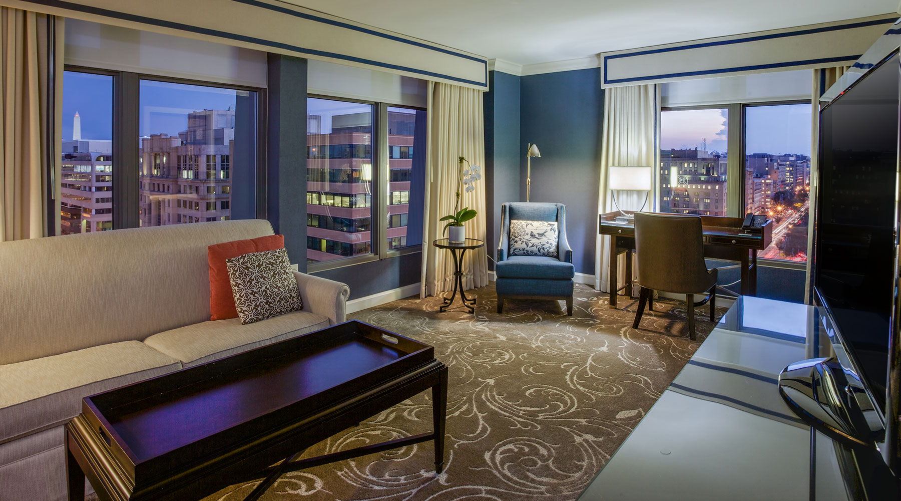 Este lujoso hotel se encuentra a corta distancia a pie de las principales atracciones que ofrece Washington D.C. Los huéspedes del hotel estarán a corta distancia de los Museos Smithsonianos, el Monumento a Washington y el Círculo DuPont, así como del Centro de Convenciones y del Monumento a Lincoln. Este lujoso hotel está rodeado de la rica cultura y encanto de los alrededores, integrando en su diseño el estilo de los años 20. La hermosa dotación de las habitaciones es equiparable a los alrededores en elegancia y esplendor regio. El hotel invita a sus huéspedes a hacer uso de la amplia elección de servicios que ofrece. En el restaurante podrán degustar con estilo las delicias culinarias de su menú.