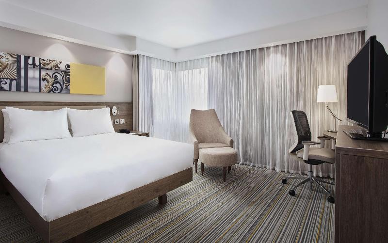 El Hampton by Hilton Oxford está situado cerca de las zonas comerciales y de ocio de Oxford. Estamos a solo 15 minutos del centro histórico y a una hora del aeropuerto de Heathrow. Oxford es la ciudad universitaria más antigua del Reino Unido, donde los cinéfilos pueden explorar los venerados salones del Christ Church College y los punts se deslizan suavemente por el río Cherwell. Nuestro hotel en Oxford está situado justo al lado del Kassam Football Stadium y a solo 5 minutos a pie del cine, la bolera, el club de ocio y los restaurantes del Ozone Leisure Park. Estamos cerca del Oxford Science Park y a solo 1, 6 km de la planta de BMW Mini, lo que convierte a nuestro hotel en una base práctica para viajeros de negocios. Explora los bonitos pueblos de los Cotswolds y el ondulante parque del Blenheim Palace. El circuito de carreras de Silverstone F1 está a 56 km y el famoso Bicester Village a solo 29 km, pero no tienes que ir tan lejos para ir de compras: el centro comercial más nuevo de Oxford, Westgate, con más de 100 tiendas nuevas con lo mejor de las calles comerciales británicas, así como prestigiosas marcas globales, ¡está a menos de 8 km! Nuestras acogedoras habitaciones con aire acondicionado ofrecen comodidades modernas que incluyen wifi gratis, un escritorio ergonómico, una cama cómoda y un televisor de pantalla plana de 32 pulgadas. Refréscate en el espacioso baño con ducha a ras de suelo o relájate en nuestro soleado hub.