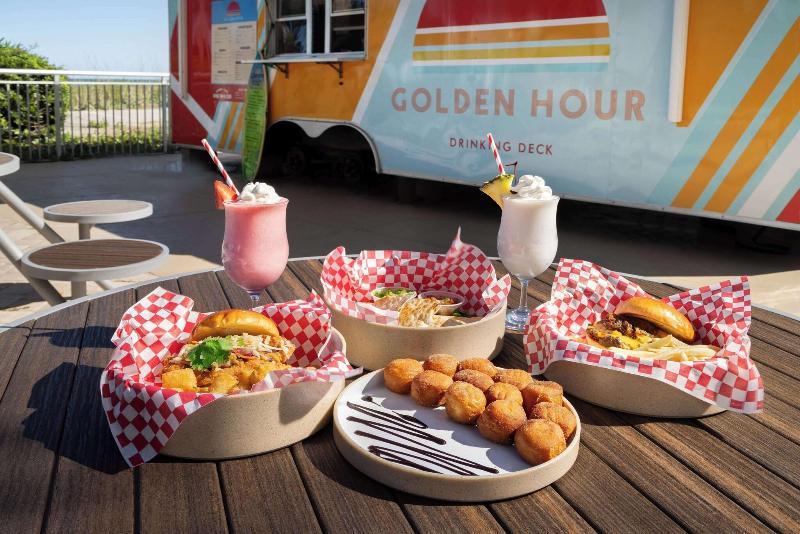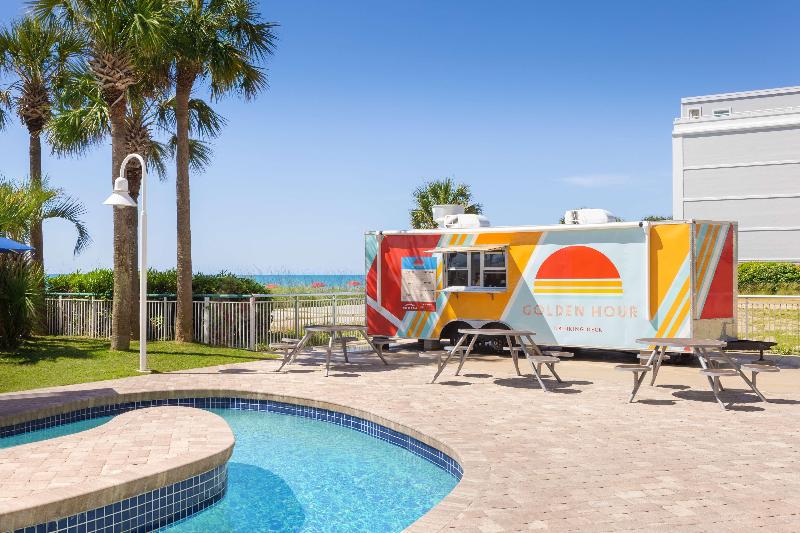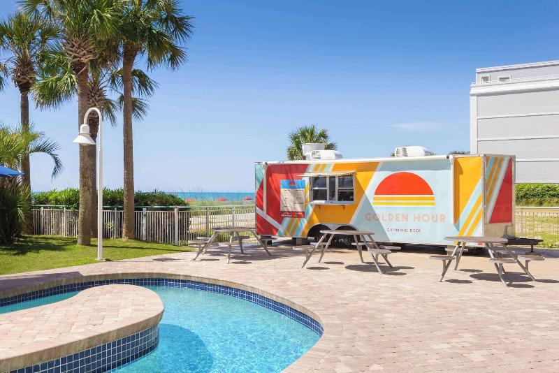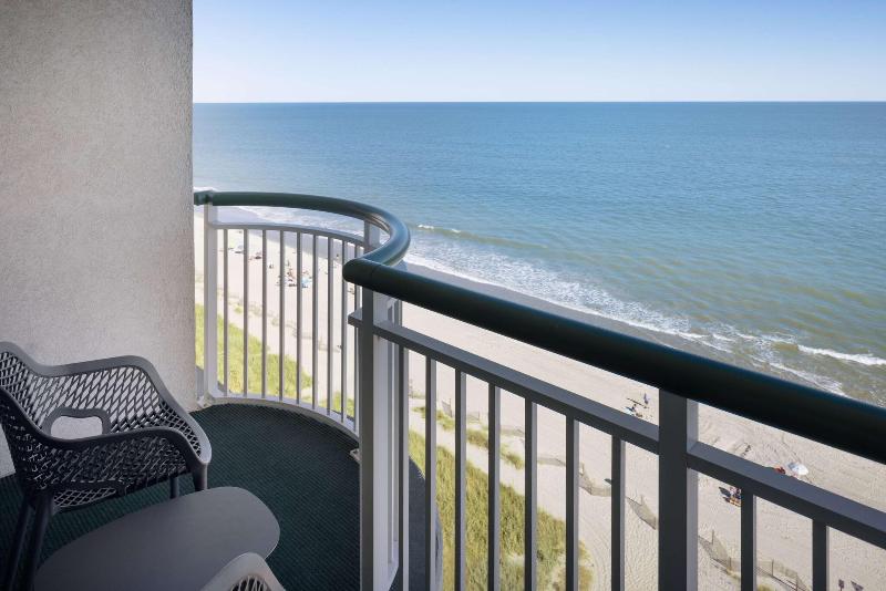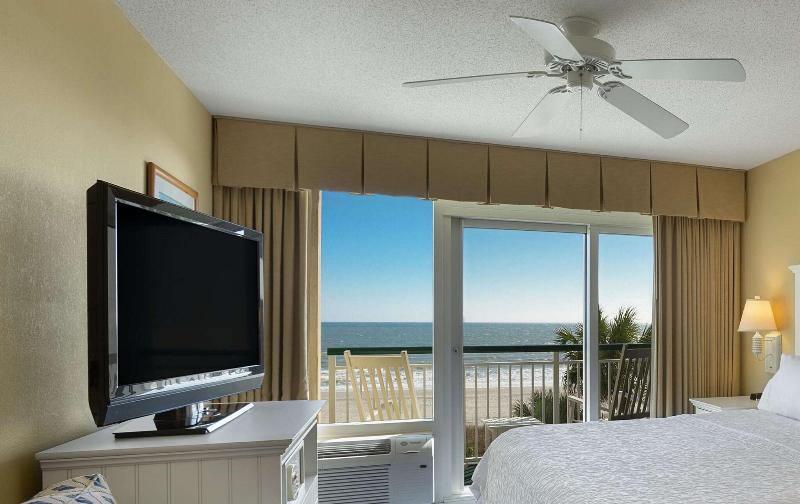 El Hampton Inn & Suites Myrtle Beach Oceanfront Resort en Carolina del Sur está ubicado directamente frente a 90 metros de playa virgen. Market Commons, Coastal Grand Mall y más de 100 campos de golf y 1000 restaurantes están a solo minutos de distancia. Nuestro resort cuenta con habitaciones estándar frente al mar, todas con microondas y refrigeradores. También contamos con suites de una y dos habitaciones con salas de estar y cocineta. Todas las habitaciones tienen un balcón privado con dos mecedoras, planchas y tablas de planchar, cafetera y secadores de pelo. Ofrecemos desayuno continental frío y caliente de cortesía, gimnasio de última generación con equipos Precor, centro de negocios con acceso las 24 horas, piscinas cubiertas (cerradas en los meses de invierno), piscinas al aire libre, jacuzzis, dos ríos lentos, área de juegos infantiles, programa de actividades para niños (de temporada) y nuestra zona de chapoteo para niños. El Hampton Inn & Suites Oceanfront Resort también ofrece habitaciones comunicadas y no comunicadas en la torre, servicio de lavandería, instalaciones de lavandería para huéspedes en el lugar, cunas portátiles y camas plegables. Disfruta de nuestras dos opciones gastronómicas, Reel Restaurant and Bar y The Golden Hour Pool Bar. También ofrecemos instalaciones para reuniones y banquetes con equipo audiovisual. Nos encanta tenerte aquí en el Hampton Inn & Suites Oceanfront Resort en Myrtle Beach, Carolina del Sur.