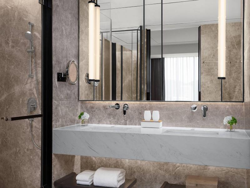 El Hangzhou Marriott Hotel Lin'an ofrece una lujosa experiencia de spa a poca distancia en coche del lago Qingshan y con fácil acceso al West Lake y la cascada Baishui. Disfruta de masajes y tratamientos faciales en el spa o relájate en las piscinas al aire libre y cubierta, así como en el gimnasio. Las 300 habitaciones del hotel cuentan con frigorífico, wifi gratuito, televisión por cable y baño privado con bañera de hidromasaje y ducha de efecto lluvia. Saborea la cocina china en Man Ho, uno de los tres restaurantes del hotel, o pide servicio de habitaciones. Dos bares ofrecen bebidas refrescantes y el desayuno bufé está disponible todos los días con un coste adicional. Los viajeros de negocios apreciarán el centro de negocios y las salas de reuniones. También hay aparcamiento gratuito, servicio de conserjería y servicio de organización de bodas.