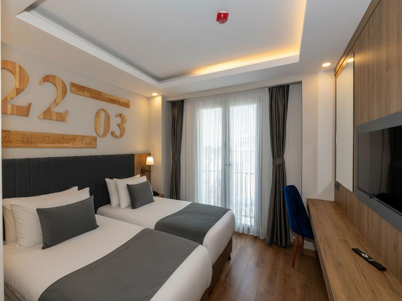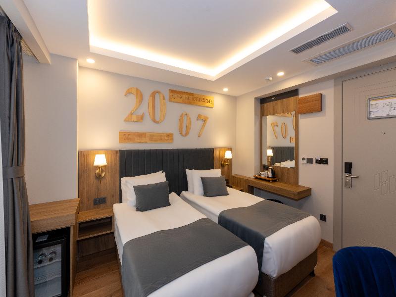 Este hotel está situado en el casco antiguo, a pocos minutos a pie de famosas atracciones turísticas como la Mezquita Azul, Santa Sofía y el Palacio Topkapi. Hay paradas de transporte público aproximadamente en un radio de 1 km del hotel y los huéspedes encontrarán restaurantes, bares, el centro turístico y tiendas a 500 m, en Sultanahmet. Dista 1,5 km del bazar de especias, 3 km del mar de Marmari y 3 km del Gran Bazar. El aeropuerto de Ataturk dista 17 km.