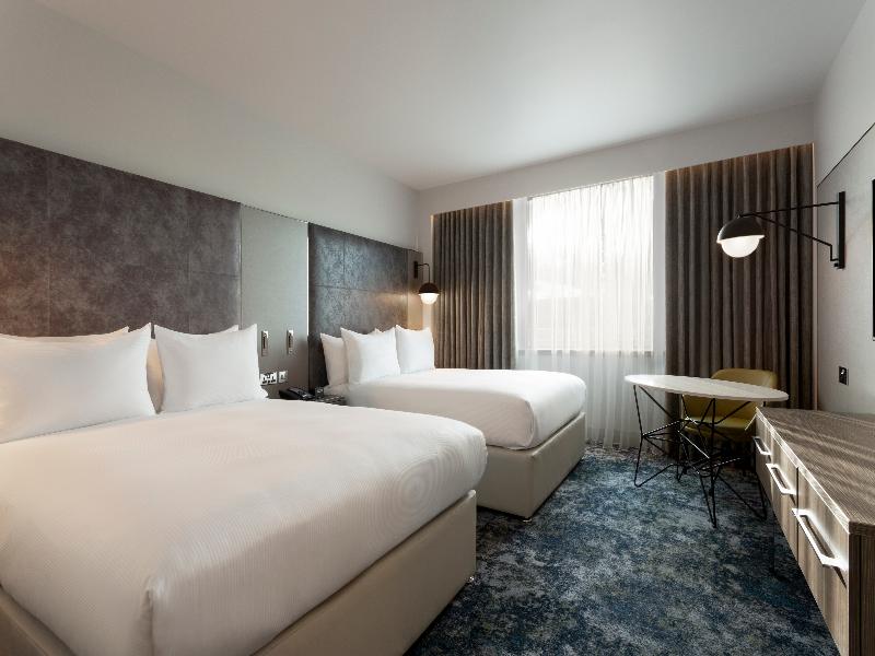 Idealmente ubicado junto al Aberdeen International Airport y The Event Complex Aberdeen, el Hilton Aberdeen TECA te sitúa cerca de algunos de los eventos más importantes de Escocia. Con aparcamiento en las instalaciones, incluyendo aparcamiento para autobuses, somos la base perfecta para jugar en algunos de los 55 campos de golf de Aberdeen y Shires. A 30 minutos del hotel se encuentran Royal Aberdeen, Murcar Links Golf Club, Cruden Bay Golf Club y Trump International. Haz un recorrido por una destilería de whisky de renombre mundial en la Ruta del Whisky o, si prefieres la cerveza artesanal, estamos a solo 30 minutos del hogar de BrewDog y DogTap. Disfruta de una estancia cálida y acogedora con un servicio excepcional en nuestras elegantes habitaciones o suites. Cada alojamiento con aire acondicionado incluye una Smart HDTV para tu entretenimiento y un mini refrigerador para mantener las bebidas frescas. Mejora tu habitación para obtener más espacio, servicios adicionales y acceso a nuestro Executive Lounge, abierto por las tardes para bebidas y canapés. Manténte activo en nuestro gimnasio gratuito con lo último en equipos TechnoGym o relájate y descansa en nuestro Devona Spa con todos los servicios. Saborea comida y bebida escocesa local en nuestro elegante Quarter House Bar and Grill, abierto para el desayuno buffet completo Hilton, un bocado rápido a la hora del almuerzo o una cena para disfrutar tranquilamente. Tenemos una variedad de menús que incluyen opciones sin gluten y veganas. No dudes en comentarnos cualquier preferencia dietética que tengas. Organiza tu próxima reunión, conferencia o evento social en uno de nuestros 7 espacios para eventos, con luz natural, persianas opacas, click share y aire acondicionado.