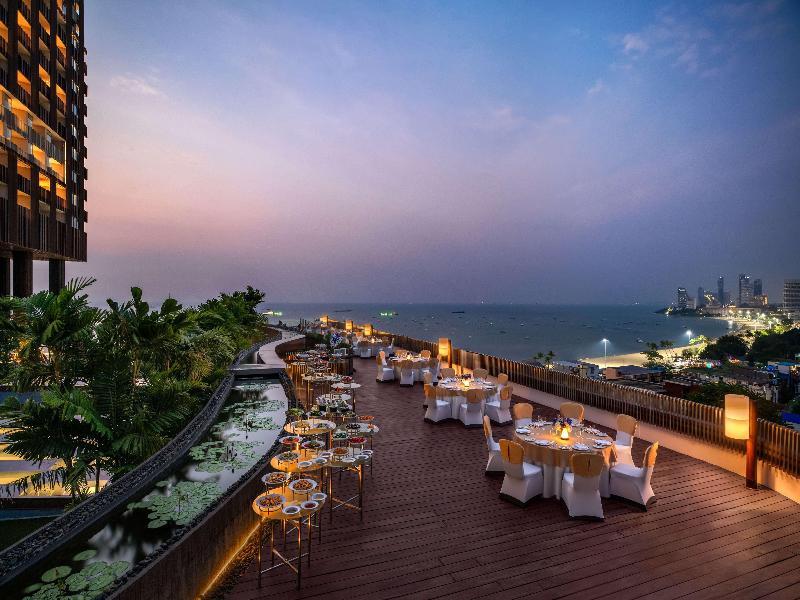 Vistas panorámicas del océano y compras en Pattaya Con impresionantes vistas al océano, nuestro hotel de 34 pisos se encuentra junto al CentralFestival Pattaya Beach, el centro comercial frente al mar más grande del sudeste asiático. También estamos a poco más de un kilómetro de Pattaya Walking Street. Nuestra piscina infinita al aire libre ofrece vistas panorámicas desde el piso 16, y contamos con un spa, tres restaurantes y un bar en la azotea para que disfrutes.