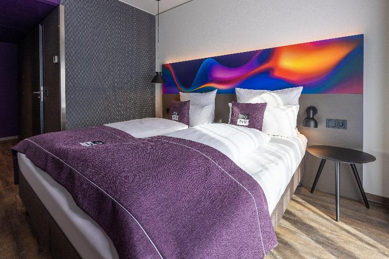 La ola de la hospitalidad: En nuestro Holiday Inn - the niu, Wave Karlsruhe City Park, en el animado centro de la ciudad, combinamos la tradición con un toque moderno. Elegante, urbano y acogedor: nuestro hotel urbano Holiday Inn - the niu, Wave Karlsruhe City Park representa el Karlsruhe moderno y te ofrece un alojamiento cómodo con un ambiente agradable. El hotel es ideal para viajeros de negocios y exploradores urbanos. Está céntricamente ubicado, a solo unos minutos a pie de los lugares de interés más importantes y de la estación central de trenes. Con nuestros consejos locales, puedes explorar la ciudad de una manera moderna y auténtica. ¡Con nosotros, te sentirás como en casa, justo en el corazón palpitante de la ciudad! Cada una de nuestras habitaciones combina comodidad con el equipamiento más moderno, incluyendo wifi de alta velocidad, smart TV y altavoz Bluetooth, una cómoda cama con somier, caja fuerte y armario. Tenemos camas supletorias o cunas disponibles para nuestros huéspedes más jóvenes, y por un cargo adicional, tu amigo de cuatro patas también puede sentirse como en casa con nosotros. La recepción está abierta las 24 horas y puedes conseguir deliciosos aperitivos a cualquier hora del día o de la noche. Nuestro elegante vestíbulo está abierto para ti y te invita a relajarte o, gracias a la zona de coworking, a trabajar. Por supuesto, también puedes utilizar nuestra conexión wifi rápida de forma gratuita aquí; puedes usarla en toda la casa sin cargo. Empieza el día bien descansado con un variado desayuno bufé en nuestro Holiday Inn - the niu, Wave Karlsruhe City Park y luego sumérgete en el bullicio de la ciudad.