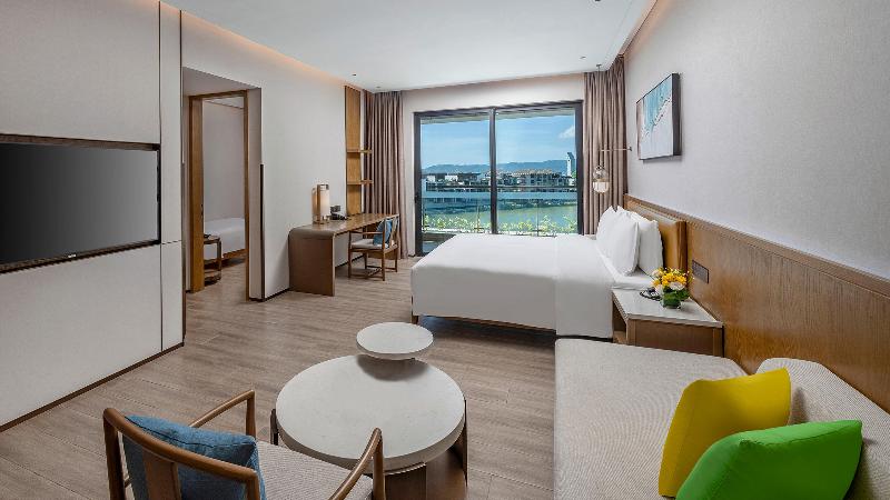 El Holiday Inn & Suites Sanya Yalong Bay se encuentra en la Zona Turística Nacional de la bahía de Yalong. El hotel goza de un exuberante entorno montañoso, una encantadora ubicación junto al lago y magníficas vistas panorámicas a la bahía de Yalong. Estamos a solo unos minutos a pie de la playa, donde le espera la diversión bajo el sol y junto al mar. El hotel cuenta con 284 habitaciones y suites de estilo tropical, cada una con una sala de estar de planta abierta y un amplio balcón que le permitirá disfrutar de las cambiantes perspectivas de la montaña, el lago y el mar. Las habitaciones ofrecen diversas comodidades, incluyendo un vestidor y una pequeña cocina equipada que le proporcionarán una estancia cómoda y práctica como en casa. ¿Y lo que es aún mejor? Nuestro programa Holiday Inn “Kids Eat, Stay & Play” satisface las necesidades de las familias que viajan con niños. La variada oferta de ocio y eventos del hotel es ideal para todo tipo de viajeros. Ubicado junto al lago, el restaurante Hi Bowl All Day Dining le permitirá cenar mientras disfruta de una suave brisa.
