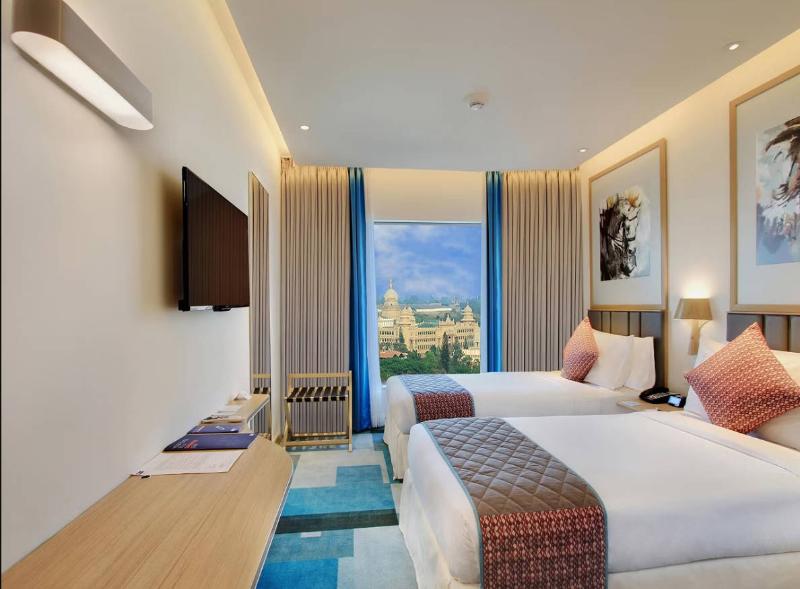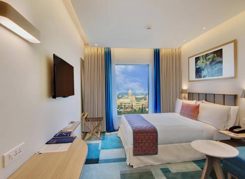 Situado en Seshadri Road, frente al Bangalore Turf Club, el Holiday Inn Bengaluru Racecourse goza de una ubicación privilegiada a tan solo 34 km del Aeropuerto Internacional Kempegowda y a menos de un kilómetro de la estación de autobuses Kempegowda y la estación de tren Bengaluru City Junction. Entre las atracciones cercanas se incluyen Cubbon Park, UB City y Central College Cricket Ground, así como oficinas corporativas como Canara Bank, RBI, NABARD y State Bank of India. El hotel ofrece 272 habitaciones bien equipadas, incluidas 22 habitaciones premium con balcones privados y 22 suites con salas de estar independientes, microondas y áreas de comedor, ideales para estancias prolongadas. Disfruta de wifi gratuito en todo el hotel, un desayuno completo para empezar el día y ropa de cama de alta calidad y duchas de alta presión para recargar energías después de un día ajetreado. Para eventos, el hotel ofrece la sala de banquetes Equus con una amplia zona de recepción, así como dos salas de reuniones, Gallop y Canter. Ya sea que viajes por negocios o por placer, te espera una cálida bienvenida en el Holiday Inn Bengaluru Racecourse.
