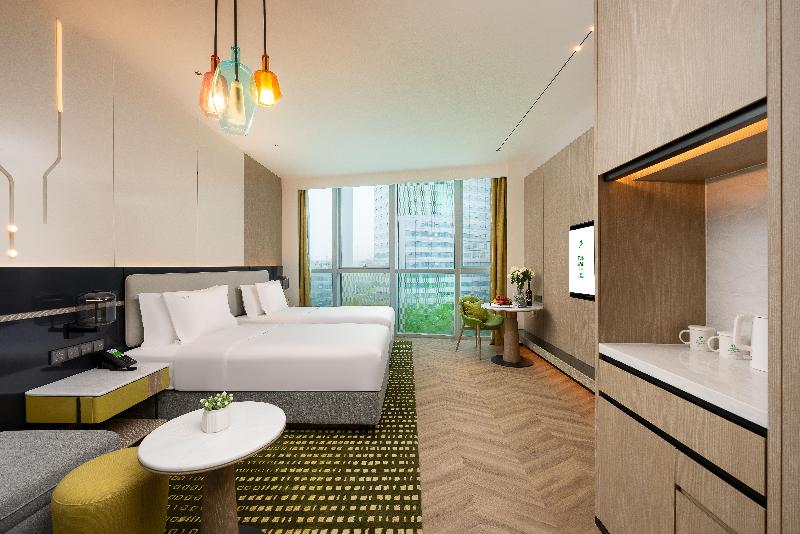 Holiday Inn Chongqing Data Valley. Cuenta con un amplio jardín de 500 metros cuadrados y una terraza mirador a 150 metros de altura, desde donde podrás disfrutar del agradable paisaje del Xiantao Data Valley Park. Cerca del Xiantao Data Valley Glass Gallery Bridge y del Xiantao Data Valley Sports Park. El hotel dispone de un cómodo acceso al transporte público. Se encuentra a unos 8 kilómetros del Aeropuerto Internacional de Chongqing Jiangbei y a 20 kilómetros de la Estación de Trenes Chongqing Norte. Hay muchas atracciones en los alrededores, como el Chongqing Central Park, el Yuelai Binjiang Park y la Chongqing Garden Expo, que enriquecerán tu experiencia de viaje y crearán recuerdos inolvidables para tus vacaciones. Tanto si viajas por placer como por negocios, el Holiday Inn Chongqing Data Valley es la opción ideal para tu visita a Chongqing. El número total de habitaciones es de 183. El Holiday Inn Chongqing Data Valley fue renovado en 2024.