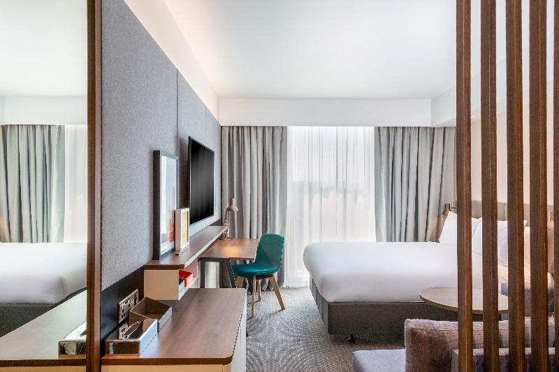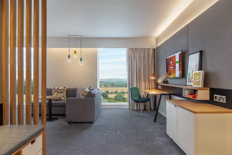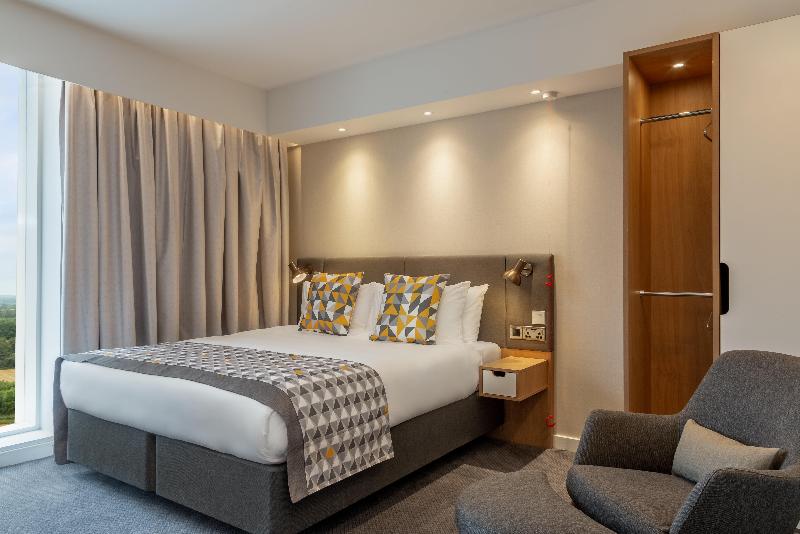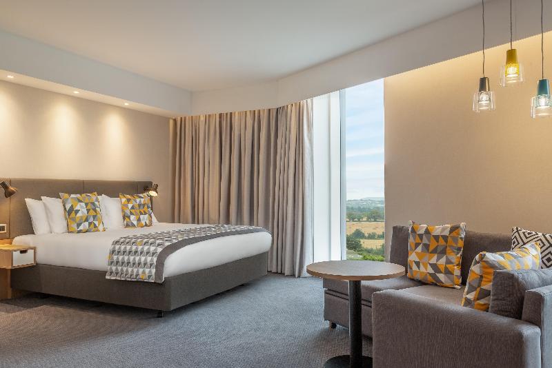 Bienvenido al Holiday Inn Dublin Airport, un hotel de 4 estrellas completamente nuevo que ofrece tarifas competitivas cerca del Aeropuerto de Dublín, con un restaurante de servicio completo, Starbucks® y un To Go Café abierto las 24 horas. Ubicado a 10 minutos del Aeropuerto de Dublín, es una excelente opción para los viajeros que buscan un lugar donde alojarse durante una escala o la noche anterior a un vuelo temprano. Ofrecemos paquetes Park, Stay and Go con transporte gratuito desde y hacia el Aeropuerto de Dublín y aparcamiento seguro. El Holiday Inn Dublin Airport también está a 15 minutos del centro de Dublín, lo que lo convierte en la base perfecta para explorar actividades para familias en Dublín y sus alrededores, como Tayto Park, Aquazone, el Castillo de Malahide, Newbridge House and Gardens y el Zoológico de Dublín. Una excelente opción para familias: los niños se alojan y comen gratis (Kids Stay & Eat Free®) en el Holiday Inn Dublin Airport. Nuestros chefs ofrecen comidas durante todo el día en el vestíbulo abierto o en Starbucks, y aperitivos las 24 horas. Ubicado justo al lado de la M50, ofrecemos cuatro salas de reuniones totalmente equipadas con luz natural y área de descanso, un lugar ideal para reuniones de negocios. Los viajeros de negocios apreciarán el wifi de alta velocidad en todo el hotel con servicios de negocios disponibles en el vestíbulo abierto (Open Lobby), mientras que todas las habitaciones cuentan con un área de trabajo con escritorio y conexión para múltiples dispositivos. Las 421 habitaciones están insonorizadas y climatizadas, y cuentan con camas Hypnos para un sueño reparador después de un día ajetreado.