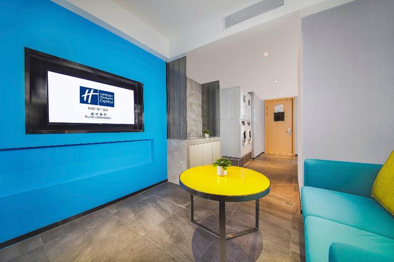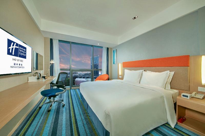 Te invitamos a alojarte en el Holiday Inn Express Fuzhou Downtown con comodidad y conveniencia en tu próxima visita a Fuzhou. El hotel está convenientemente ubicado en el Tahoe Plaza Phase II Commercial Complex en la 2ª carretera de circunvalación este. La distancia entre el hotel y el Aeropuerto Internacional Fuzhou Changle es de unos 38 km, unos 3, 4 km de la estación de tren de Fuzhou y unos 12, 5 km de la estación CRH Fuzhou Sur. Estamos cerca de algunas atracciones de Fuzhou. La distancia es de unos 4, 5 km de Three Lanes and Seven Alleys, unos 5 km del West Lake y unos 6, 1 km de Drum Mountain. Desplázate fácilmente a otras partes de la ciudad con la cercana Lianjiang North Road. Disponemos de 195 tranquilas habitaciones, cada una con todo lo que necesitas, como wifi de alta velocidad, camas cómodas, una ducha revitalizante y desayuno buffet diario gratuito con platos chinos y occidentales. El hotel también está equipado con una sala de reuniones con capacidad para 45 personas en 76 metros cuadrados. Otras instalaciones de autoservicio incluyen el Business Center y el Laundry Corner. Ya sea por negocios o por placer, el Holiday Inn Express Fuzhou Downtown es la elección perfecta para una estancia inteligente en tu próxima visita a Fuzhou.