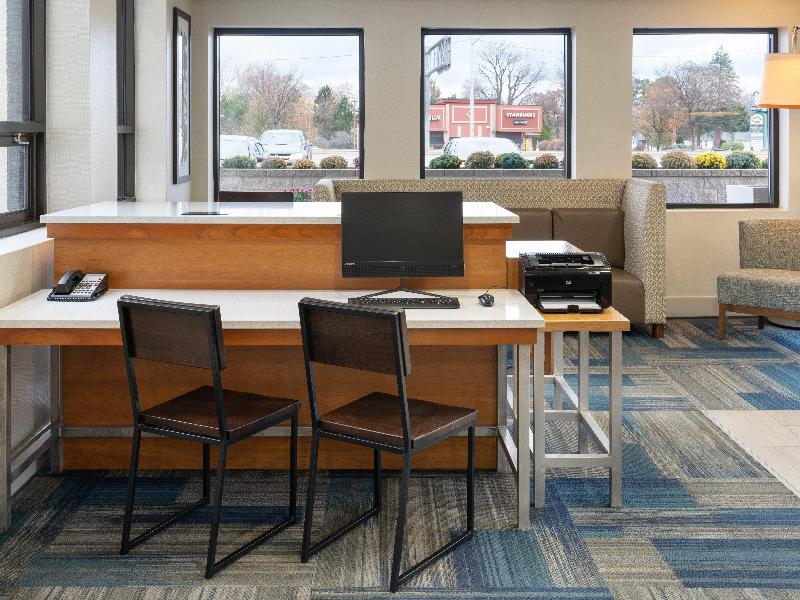Bienvenido al Holiday Inn Express Hotel en Rochester-Greece Disfruta de una estancia relajante en nuestro hotel en Rochester, Nueva York, que te ofrece servicios premium y una ubicación ideal junto a la Ruta 104, con rápido acceso al distrito financiero de Rochester. Nuestro hotel en Rochester está convenientemente ubicado cerca de atracciones locales como Seabreeze Amusement and Water Park, Highland Park, el Seneca Zoo y el Geva Theater, todos a pocos kilómetros de nuestro hotel en Rochester, NY. El equipo de hockey Rochester Americans, filial local de la AHL de los Buffalo Sabres. Si prefieres ir de compras, visita el Mall at Greece Ridge, con más de 100 tiendas exclusivas, a solo 1, 6 km de nuestro hotel en Rochester, NY. Los viajeros de negocios que buscan un hotel cerca del Aeropuerto de Rochester (ROC) se beneficiarán de nuestra ubicación cerca de muchas empresas de la zona, como Johnson & Johnson, Delphi, Eastman Kodak, Carestream Health y Jabil. Cerca de nuestro hotel en Rochester se encuentran varias universidades de la zona, como la University of Rochester, SUNY Brockport, Rochester Institute of Technology, Roberts Wesleyan y Nazareth College. Nuestro hotel en Rochester, Nueva York, tiene como objetivo ofrecerte el mejor servicio y comodidad con un gimnasio abierto las 24 horas, acceso gratuito a internet de alta velocidad y nuestro desayuno bufé Smart Start gratuito. Reserva tu habitación de hotel en Rochester ahora y alójate de forma inteligente en nuestro Holiday Inn Express en Rochester-Greece.