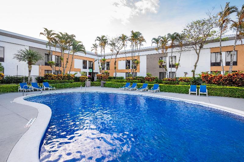 Ubicado a solo 1 milla del Aeropuerto Internacional Juan Santamaría, el Holiday Inn Express® San José Costa Rica Airport es tu puerta de entrada para explorar la vibrante ciudad de San José y sus alrededores. Con fácil acceso a la Carretera Interamericana, nuestro hotel es una excelente opción tanto para viajeros de negocios como de placer. Sumérgete en la rica cultura de Costa Rica visitando los cercanos Museos del Jade y del Oro, el icónico Teatro Nacional, o explora las exuberantes plantaciones de café, la Reserva Biológica Bosque Nuboso Monteverde y el Parque Nacional Volcán Poás. Comienza tu día con nuestro desayuno de cortesía, mantén tu rutina de ejercicios en nuestro gimnasio y relájate en nuestra piscina al aire libre. Disfruta de la comodidad de nuestro servicio de transporte al aeropuerto las 24 horas, wifi gratuito y habitaciones bien equipadas. En Holiday Inn Express, estamos comprometidos a hacer que tu estancia en San José sea realmente inolvidable.