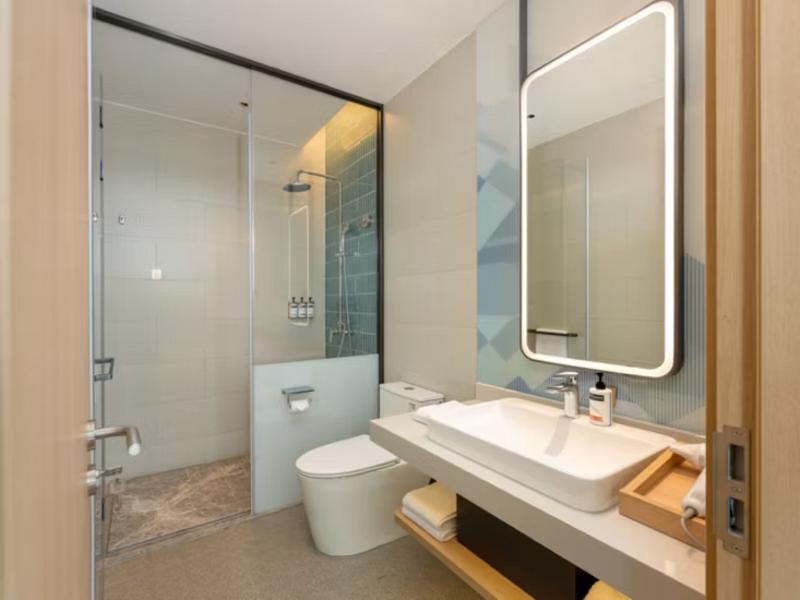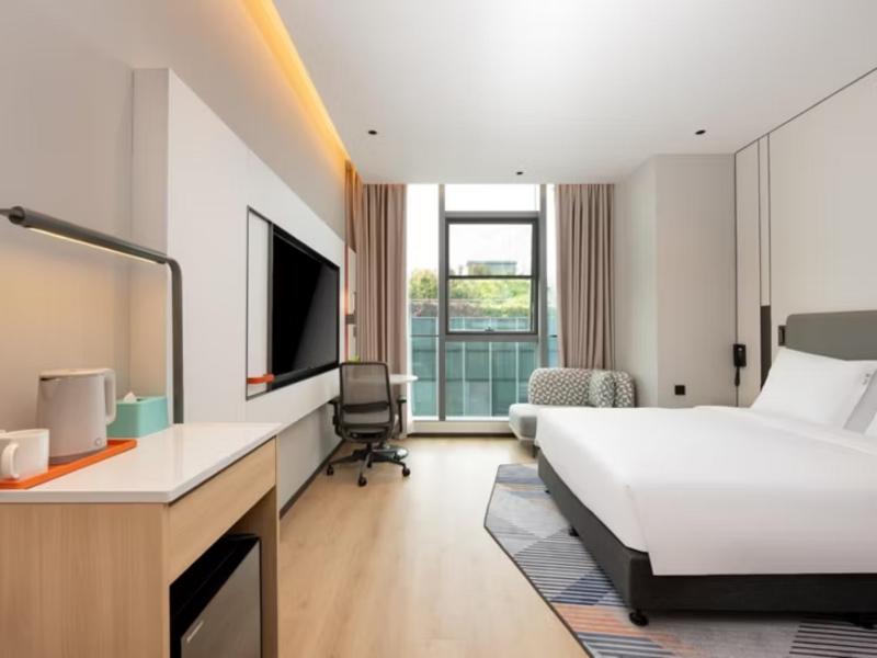 El Holiday Inn Express Shanghai Hongqiao CBD, situado en el corazón del distrito financiero de Hongqiao, se encuentra a aprox. 500 m (unos 10 minutos a pie) del Centro Nacional de Exposiciones y Convenciones de Shanghái. El hotel también está junto al Aeropuerto Internacional de Shanghái-Hongqiao (SHA) y la estación de tren de Hongqiao, con un cómodo acceso a pie al Hongqiao Hub en tan solo 10-15 minutos. Los huéspedes pueden acceder fácilmente a las líneas 2, 10 y 17 del metro para desplazarse por toda la ciudad o utilizar la línea Airport Link para llegar directamente al Aeropuerto Internacional de Pudóng (PVG). El distrito financiero alberga numerosas oficinas corporativas y complejos comerciales, incluidos importantes destinos de compras como Xintiandi Hongqiao y Hongqiao Paradise Walk.