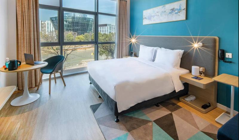 Shanghái es una vibrante metrópolis internacional entrelazada con personas y culturas de todo el mundo. En la Nueva Área de Pudong, el Parque de Alta Tecnología de Zhangjiang se suma a la vitalidad de la ciudad con su audaz espíritu de innovación. El Holiday Inn Express Shanghai Pudong Zhangjiang se encuentra en el AI Future Block del Parque de Alta Tecnología de Zhangjiang, rodeado de numerosas empresas de alta tecnología de renombre. El hotel ofrece a sus huéspedes un entorno tranquilo y la mayoría de las habitaciones cuentan con preciosas vistas al río. Estamos aproximadamente a 27 kilómetros en línea recta del Aeropuerto Internacional de Shanghái-Pudong. Además, puedes llegar fácilmente en coche a Shanghai Disney Resort. El hotel dispone de 90 elegantes habitaciones con muebles multifuncionales diseñados para aumentar la comodidad y la privacidad durante tu estancia. Las habitaciones están equipadas con enchufes y puertos USB para facilitar el uso de tus dispositivos. Disfrutarás de una cama cómoda, una ducha revitalizante, accesorios de oficina y de ocio, y un desayuno buffet de estilo chino y occidental, todo creado para que disfrutes de una experiencia de viaje relajada. El hotel cuenta con un espacio compartido que llamamos The Great Room, que se adapta al estilo de vida actual que combina trabajo y ocio. Además, estamos equipados con internet inalámbrico, sistema de habitación con IA, sistemas de registro de entrada y salida automáticos, un punto de autoservicio Starbucks y una estación de autoservicio 24 horas donde puedes comprar bebidas y aperitivos. Ya sea por vacaciones o por trabajo, el Holiday Inn Express Shanghai Pudong Zhangjiang es la opción ideal para que tu viaje sea simple e inteligente.