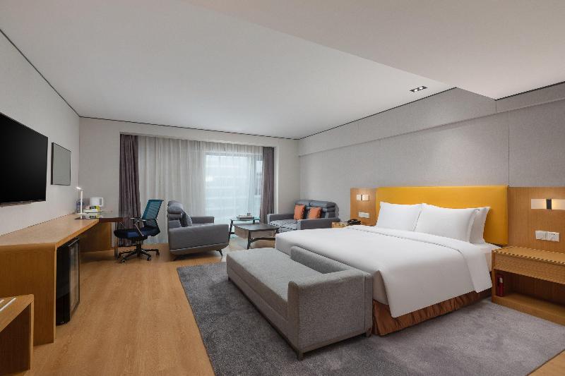 Estratégicamente ubicado en el Edificio 2, Zhengrong Rainbow Valley, South Yanxiang Road, en el nuevo distrito de Qujiang. Esta zona alberga el mundialmente famoso complejo histórico y cultural de la Gran Pagoda del Ganso Salvaje, así como otros lugares históricos, y se considera el núcleo económico, político y cultural de Xi'an. El hotel está junto al Centro de Asuntos Gubernamentales del nuevo distrito de Qujiang, el Xi'an Qujiang e-sports Center y el Qujiang Cultural and Creative Valley, con fácil acceso al transporte público. Se encuentra a solo 5 minutos en coche de la entrada a la autopista Qujiang Express y cerca de las líneas 4 y 5 del metro, lo que facilita tus desplazamientos. Disponemos de habitaciones elegantes, sencillas y confortables, donde podrás disfrutar de un sueño reparador, un baño revitalizante y otras experiencias relajantes. El desayuno buffet, con opciones chinas y occidentales, está incluido en el precio de la habitación. También contamos con un gimnasio para que puedas mantener tu rutina de ejercicios, y un centro de negocios equipado con ordenadores multifunción, escritorios y otros servicios como acceso a internet, espacio de trabajo e impresión (de pago). Además, el hotel dispone de 3 salas de reuniones estándar, ideales para celebrar conferencias y reuniones en un ambiente cómodo. Ya sea por negocios o por placer, nuestro hotel será una elección inteligente para tu estancia.