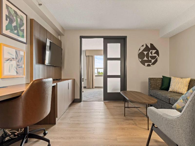 Te encantará el Holiday Inn Hotel & Suites London. Con una ubicación conveniente a minutos del centro y de la autopista 401, ofrecemos rápido acceso a destinos locales como The Factory, East Park Water Park, Boler Mountain, el London Convention Centre y Budweiser Gardens. En el Holiday Inn Hotel & Suites London comprendemos las exigencias del viajero moderno y nos esforzamos por ser tu hogar lejos de casa. Nuestras habitaciones recientemente diseñadas incluyen ropa de cama de lujo, colchones con acolchado tipo almohada y una variedad de almohadas para garantizarte un buen descanso. Ofrecemos wifi gratuito en todas las habitaciones y áreas públicas, y un centro de negocios abierto las 24 horas para tu comodidad. Disfruta de nuestro gimnasio tipo loft en el último piso, la gran piscina cubierta o relájate en nuestro patio al aire libre. Con un ambiente estilo boutique, también te ofrecemos elegantes salas de reuniones con luz natural, ideales para retiros ejecutivos o eventos íntimos. Ten en cuenta que solo se permiten perros en las habitaciones.
