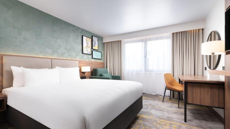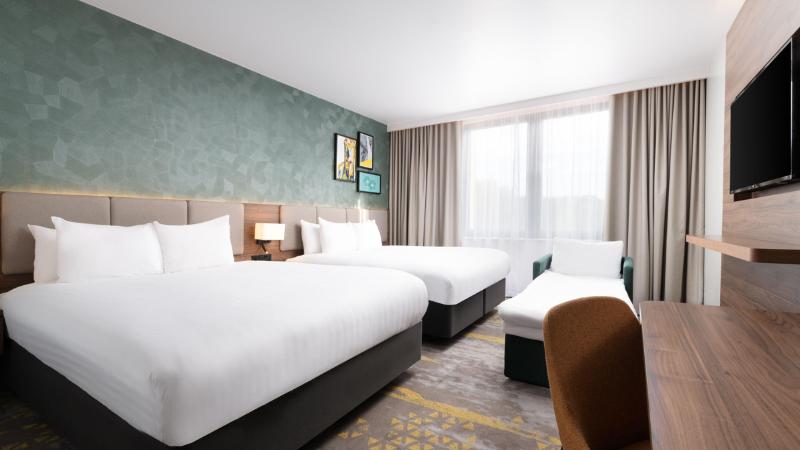 Un práctico hotel en Gatwick recientemente renovado y ampliado con una inversión de 9 millones de libras, que ha transformado casi todas las áreas, incluyendo la recepción, el restaurante y los salones para eventos. La ampliación también ha supuesto un aumento de 40 nuevas habitaciones, la mayoría de ellas familiares con capacidad para 5 personas, lo que convierte a este hotel en uno de los pocos de la zona que ofrece esta opción. El Holiday Inn London Gatwick Worth está situado en Crawley, un lugar ideal tanto para viajeros de negocios como de placer, y dispone de aparcamiento. Ubicado a 10 minutos del aeropuerto de Gatwick (LGW), nuestros paquetes Park, Stay & Go te permiten dejar tu coche en el hotel y llegar al aeropuerto totalmente descansado. Los trenes de la cercana estación Three Bridges llegan a London Victoria en 40 minutos. Brighton está a solo 35 minutos en coche y las tiendas locales de Crawley se encuentran a poca distancia. Otras atracciones locales incluyen Wakehurst Place y Tulley’s Farm, ideales para una divertida excursión familiar. El distrito financiero local Manor Royal también está cerca y alberga a más de 500 empresas, incluyendo Thales, L3Harris y Elekta. En nuestro hotel, podrás disfrutar de wifi gratuito y nuestra recepción está abierta las 24 horas. Nuestras modernas y espaciosas habitaciones están equipadas con set de té y café y control de temperatura individual. Ofrecemos habitaciones con sofá cama para familias, así como habitaciones accesibles. Nuestras suites disponen de una sala de estar independiente y camas extragrandes.