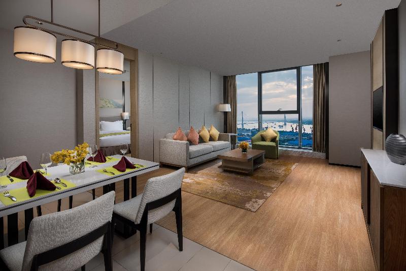 El Holiday Inn Nanjing Harbour, convenientemente ubicado en la Zona Comercial Crystal Plaza en la Avenida Xingang, ofrece 312 habitaciones y suites bien equipadas. Cada habitación cuenta con un televisor de pantalla plana con canales por satélite, un cómodo escritorio con silla ergonómica y acceso a internet de alta velocidad. También puedes utilizar el centro de negocios del hotel, que ofrece servicios de impresión, fax, fotocopias, correo electrónico y asistencia informática. Para conferencias y eventos, el hotel dispone de siete salas de reuniones, incluyendo un Gran Salón de Baile de 900 m² y un salón de eventos de 300 m². Mantén tu rutina de ejercicios en el gimnasio completamente equipado y disfruta de deliciosas comidas en el restaurante abierto todo el día. Considera el Holiday Inn Nanjing Harbour para tu próxima visita a Nankín.