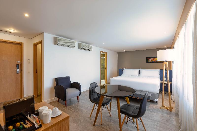 El Anhembi se erige como el hotel de convenciones más grande de Brasil, reconocido por albergar grandes eventos. Ubicado en la vibrante Zona Norte, nuestro hotel está convenientemente situado cerca del Anhembi Events Center, el Anhembi Sambadrome y el Aeropuerto Campo de Marte. Atracciones icónicas como el centro de São Paulo, el Allianz Parque Stadium y el Center Norte Mall se encuentran a poca distancia. Después de un día de exploración, relájate en nuestras espaciosas habitaciones, que van de 26 a 46 m², y disfruta de comodidades premium como piscina cubierta, gimnasio completamente equipado y wifi gratuito. Nuestro amplio centro de convenciones ofrece 2500 m² de espacio para eventos distribuidos en tres plantas, lo que lo convierte en el lugar ideal para reuniones corporativas y sociales. Deléitate con deliciosas comidas en el Camauê Restaurant, donde el desayuno, el almuerzo y la cena exhiben sabores tanto locales como internacionales. Para bebidas y refrigerios, visita el Bar Du Hotel, el lugar perfecto para relajarse y socializar. Nuestra política de admisión de mascotas garantiza que tu compañero peludo se sienta igual de bienvenido. Combinamos grandeza, comodidad y un servicio excepcional, lo que nos convierte en tu perfecto hogar fuera de casa en São Paulo.