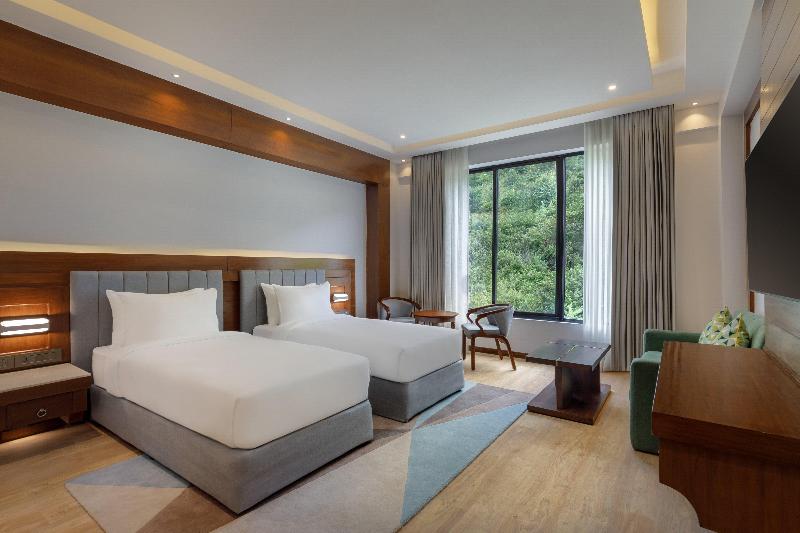 Ubicado en las faldas del glorioso bosque Shivapuri, Holiday Inn Resort Kathmandu Budhanilkantha se encuentra a tan solo 40 minutos en coche del Aeropuerto Internacional Tribhuvan y a menos de 30 minutos del vibrante centro de la ciudad. Envuelto en un entorno sereno y pintoresco, Holiday Inn Resort Kathmandu, Budhanilkantha ofrece un retiro maravilloso con actividades divertidas, instalaciones para niños y comodidades estilo resort. Con una vista espectacular de toda la ciudad por un lado y la exuberante vegetación del bosque Shivapuri por el otro, nuestro resort te ofrece un espacio para relajarte y reconectar con la naturaleza mientras disfrutas de niveles incomparables de confort y placer. Diseñado con nuestro objetivo 'Escapada sin esfuerzo para todos' en mente, Holiday Inn Resort ofrece amplias habitaciones con instalaciones y servicios de vanguardia, perfectas para descansar y desconectar. En nuestros restaurantes, podrás saborear una variedad de exquisitos platos que satisfacen todos los gustos. Las actividades familiares del resort, el club infantil, el gimnasio y el spa te mantendrán entretenido, mientras que nuestros versátiles espacios para eventos y reuniones garantizan encuentros y celebraciones sin complicaciones. En Holiday Inn Resort, nos encargamos de los detalles para que tú puedas concentrarte en crear recuerdos inolvidables con tus seres queridos.