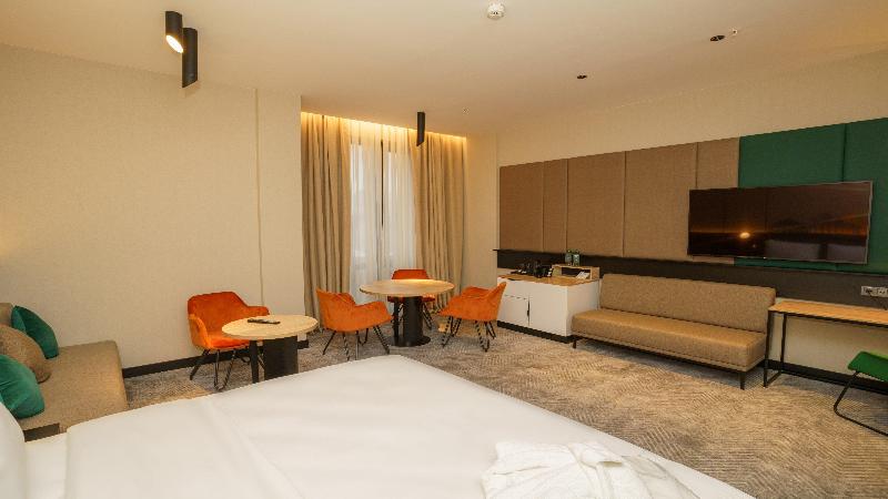 Las 272 acogedoras habitaciones ofrecen el lugar perfecto para relajarse al final del día. Construido en 2024, el Holiday Inn Tashkent City está ubicado en el centro del distrito financiero y cultural de Tashkent. Nos encontramos a una conveniente distancia de 7, 5 km del Aeropuerto Internacional de Tashkent (TAS) y a 7 km de la estación de tren. Disponemos de aparcamiento para estancias cortas y largas. Estamos a dos minutos de las principales atracciones del parque Tashkent City y a un corto trayecto en coche del complejo Hazrati Imam. Sumérgete en la atmósfera oriental del Chorsu Bazaar o disfruta de las compras en el moderno Tashkent City Mall. El UzExpo Center está a tan solo 6 km. El hotel cuenta con cuatro salas de conferencias, wifi de alta velocidad, piscina cubierta, sauna, hammam y gimnasio. Ven a nuestro restaurante en la 6. ª planta, con terraza para todas las estaciones y vistas al parque.