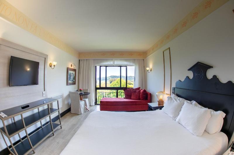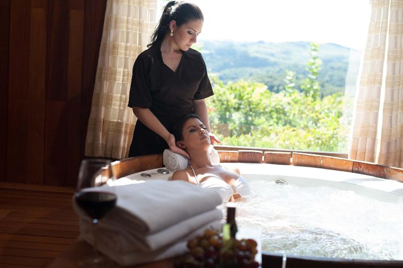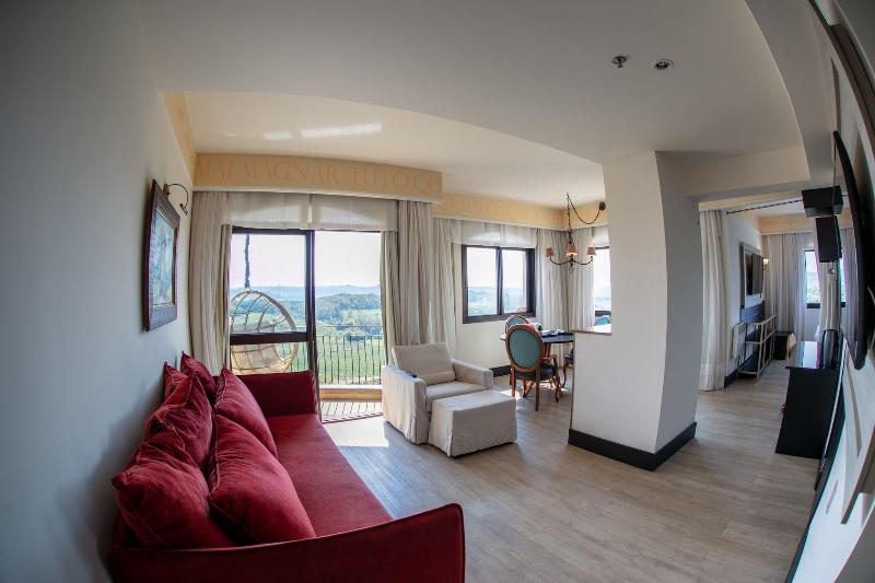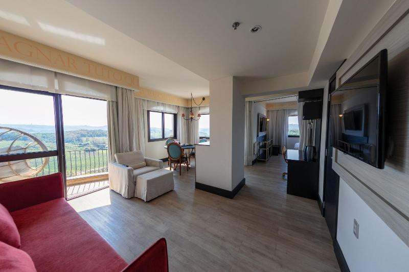 Ubicado en la campiña de Bento Goncalves, el lujoso Spa do Vinho Hotel & Condomínio Vitivinícola se encuentra a poca distancia en coche de varias bodegas de renombre, como Miolo (1 minuto) y Almaunica (5 minutos). Este hotel de estilo toscano ofrece 128 habitaciones equipadas con minibar, camas con pillow-top, Smart TV de 32 pulgadas con cable y wifi gratuito. Los huéspedes pueden disfrutar de una variedad de servicios, que incluyen un spa completo con masajes y tratamientos corporales, un gimnasio abierto las 24 horas, una piscina al aire libre y una bañera de hidromasaje. Las opciones gastronómicas incluyen cuatro restaurantes, entre ellos Leopoldina, que sirve cocina internacional, así como servicio de habitaciones las 24 horas y un bar junto a la piscina. Todos los días se sirve un desayuno completo gratuito. Para los viajeros de negocios, el hotel ofrece un centro de negocios, check-in/check-out exprés y un amplio espacio para reuniones.