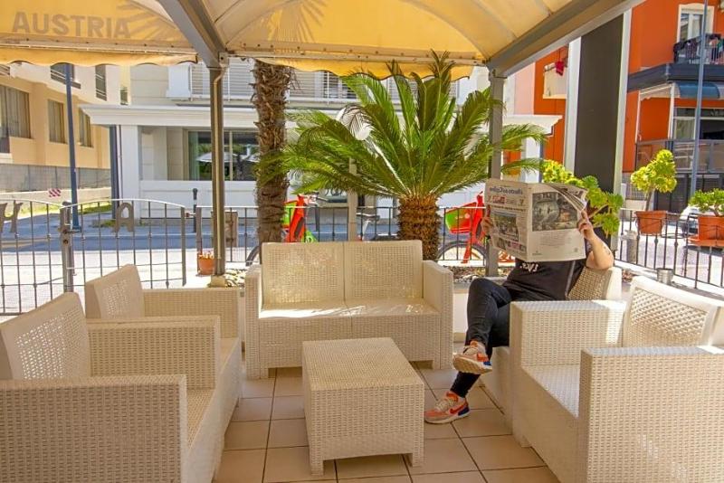 A menos de 100 metros de la playa y a 10 minutos a pie del parque temático Fiabilandia, el Hotel Austria ofrece habitaciones con aire acondicionado. Se encuentra en Miramare, a poca distancia en coche del centro de Rímini. Todas las habitaciones del Hotel Austria incluyen caja fuerte, TV de pantalla plana y baño privado con artículos de aseo gratuitos y secador de pelo. El WiFi es gratuito en las zonas comunes. El desayuno bufé se sirve a diario e incluye productos dulces y opciones sin gluten. El bar también dispone de una terraza al aire libre. Rimini Fiera está a 15 minutos a pie de la estación de tren de Miramare y a 5 minutos en coche del Aeropuerto Internacional Fellini.