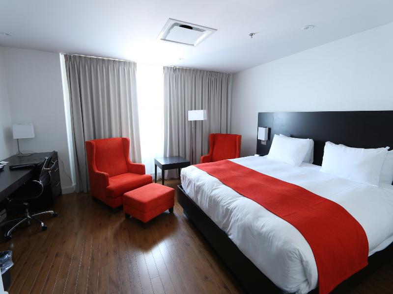 Ubicado cerca de los puentes Quebec y Pierre-Laporte, las estaciones de tren y autobús, y el aeropuerto Jean-Lesage, el Hotel destaca por su ubicación estratégica, a poca distancia del centro comercial más grande de la ciudad, restaurantes y bares. También tienes la posibilidad de tomar el transporte público justo enfrente del hotel, que te llevará al Viejo Quebec en menos de 15 minutos. Ya sea que estés de vacaciones o en un viaje de negocios, las amplias habitaciones y suites del Hotel satisfarán todas tus necesidades. ¡El hotel te ofrece la comodidad del hogar con toda la practicidad de la oficina!