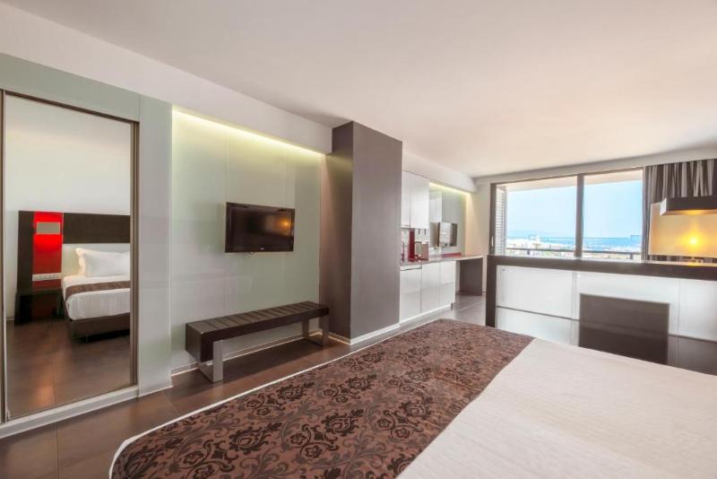 Situado en la playa de Praia da Rocha con vistas al mar, este hotel ofrece cómodas suites con wifi gratis, aire acondicionado, camas extragrandes, sofá cama, dos televisores LCD con cable y balcón. El puerto deportivo de Portimão está a poca distancia a pie, y la famosa Rocha Beach se encuentra a solo 600 metros. El aeropuerto de Faro está a 80 km en coche. Disfruta de comidas en el hotel con cenas buffet y bebidas en el restaurante y el Grand Caffé Bar. Otras comodidades incluyen piscina, gimnasio con máquinas de cardio y cómodo aparcamiento en las instalaciones. En las inmediaciones, encontrarás restaurantes, cafeterías, un casino y campos de golf.