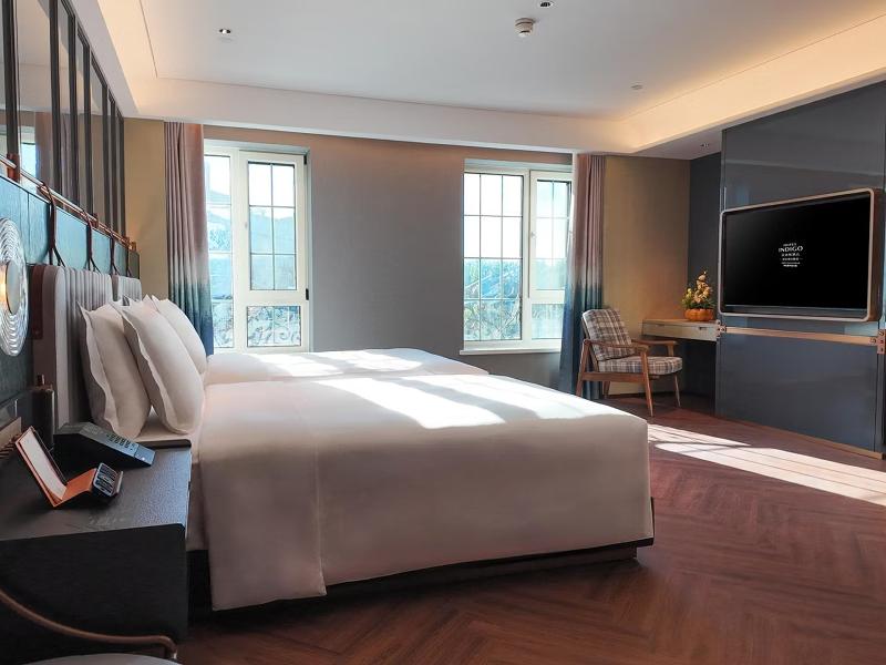 Descubre el encanto histórico de Harbin en invierno. El Hotel Indigo Harbin Central Avenue se encuentra en el extremo norte de la emblemática calle Zhongyang, cerca del río Songhua y la famosa torre conmemorativa del control de inundaciones. El novedoso diseño del hotel se inspira en la cultura local. El pasillo 'Rumbo a la Ciudad Ideal' en la planta baja, inspirado en el puente ferroviario y el tranvía, conduce al vestíbulo de recepción en la novena planta, una fusión de estilos retro y modernos. Los elementos de diseño en todo el vestíbulo incorporan detalles de la estación de tren de Harbin, como relojes y copos de nieve.