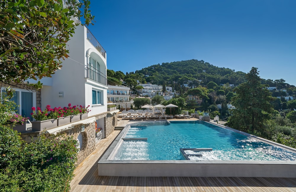 Está situado en una posición privilegiada que permite a sus clientes estar en el corazón de Capri. El jardín del hotel y la piscina se mezclan perfectamente con el diseño achitectural que con el tiempo ha dado vida a una armonía exquisita "Caprese" de arcos, bóvedas, estucos y mármoles que envuelven las habitaciones en un ambiente de tranquilidad. Después de una reciente renovación en el sentido más completo de la tradición de la isla. Las habitaciones, decoradas en un estilo sencillo pero elegante con todas las comodidades más modernas, del mismo modo, su decoración interior se completa con el material brillante, florecimiento, por piezas originales de obras de arte de la elegancia discreta que se dirigían a experimentar su calidad y su forma; todo una atención al detalle que permiten a sus huéspedes sumergirse por completo en la intimidad de una estancia.
