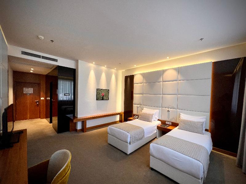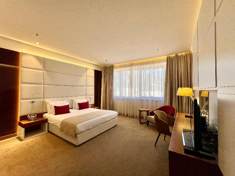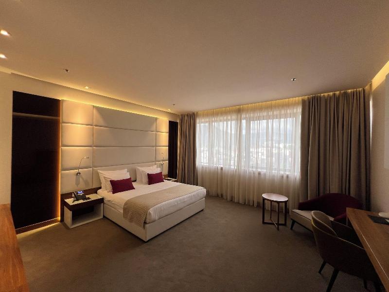 Con una ubicación céntrica y una magnífica vista panorámica de Mostar, este nuevo hotel de lujo representa una combinación ideal de arquitectura moderna y elegancia atemporal. Una rica variedad de servicios cuidadosamente seleccionados atraerá tanto al viajero de negocios como al de placer. Un exclusivo centro de bienestar con piscinas cubiertas para adultos y niños, 3 tipos de saunas, una sala de masajes y amplias habitaciones y suites es lo que hace que esta propiedad sea tan atractiva. El hotel goza de una ubicación privilegiada en el corazón de la ciudad y está bien comunicado por transporte público. La zona histórica de la ciudad y los establecimientos culturales más populares se encuentran a poca distancia a pie.