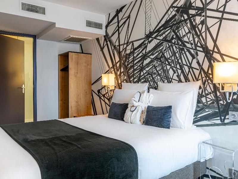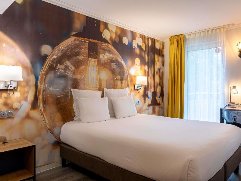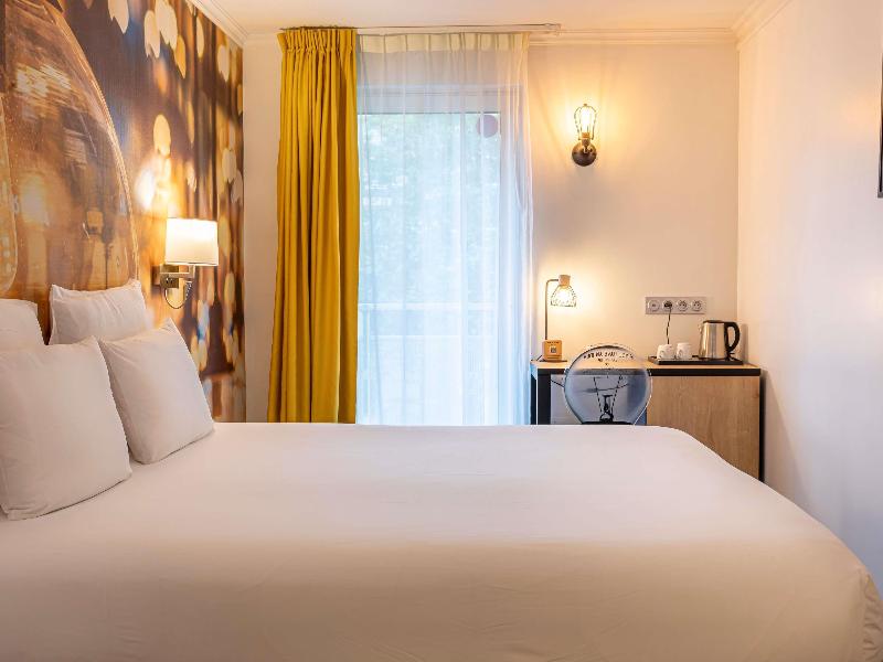 Una escapada completa a las puertas de París. . . En la línea 4 del metro, nuestro hotel dispone de aparcamiento privado. Nuestro jardín ofrece un ambiente relajante, ideal para recargar energías. El hotel ha sido renovado con un estilo moderno, inspirado en la electricidad. Déjate sorprender por nuestras deslumbrantes habitaciones. ¿Quién pensaría que están tan cerca del Parc des Expos, Porte de Versailles? Un lugar único para tus viajes de negocios y turismo.