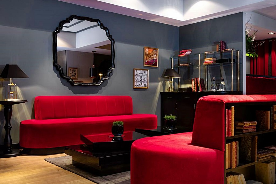 Monsieur le ofrece guardar su equipaje en una habitación cerrada si sus horarios de salida o llegada no coinciden con la disponibilidad de su habitación. De este modo, podrá comenzar su visita a la capital de inmediato o aprovecharla hasta el último minuto, sin cargas. En el espacio del salón adyacente a la recepción, Monsieur invita a sus invitados a quedarse en los opulentos sofás de terciopelo escarlata. Un área amigable en la que disfrutar de una bebida caliente o fría y probar una exquisita tarta de tarta de la famosa pastelería sin gluten Helmut Newcake.