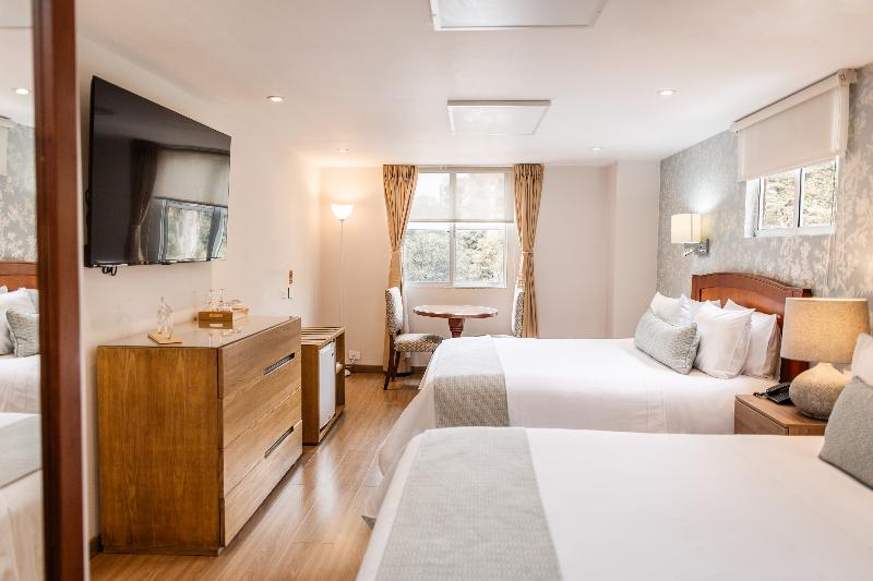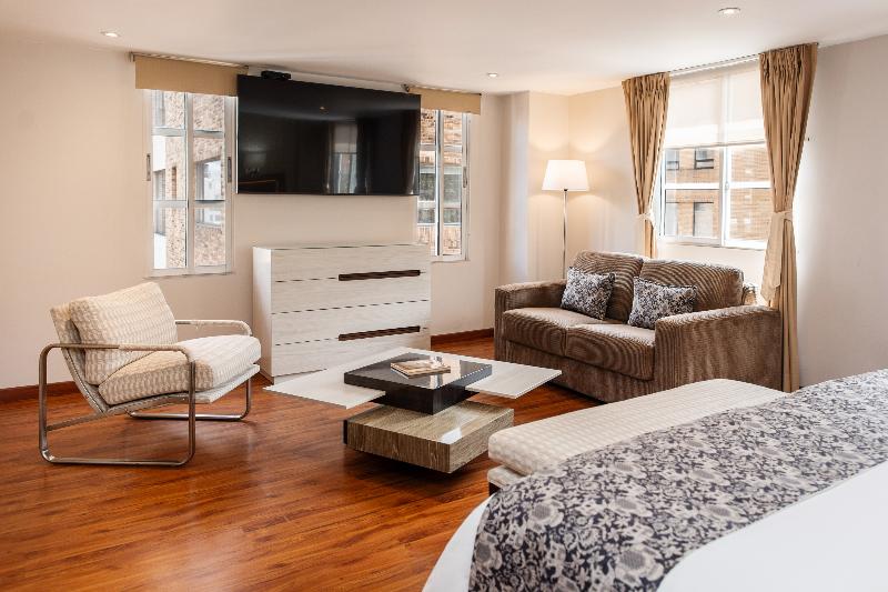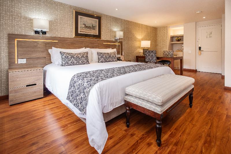 El Hotel Portón Bogotá, de 5 estrellas, ofrece un lujoso alojamiento tipo boutique en el exclusivo barrio de La Cabrera en Bogotá. A solo cinco minutos a pie de la Zona T, los huéspedes disfrutan de fácil acceso a los mejores centros comerciales, negocios, restaurantes y lugares de entretenimiento. El hotel cuenta con 39 habitaciones exquisitamente decoradas con ventanas insonorizadas, televisores LCD, caja fuerte, minibar y wifi gratuito. Algunas habitaciones también ofrecen un relajante jacuzzi. El restaurante del hotel, Le Jardin Perdu, sirve un delicioso menú de cocina internacional y local. Los huéspedes pueden relajarse con una copa en el bar El Olmo, abierto de 14:00 a 22:30 h. Los servicios adicionales incluyen un centro de negocios, servicio de lavandería, estacionamiento, gimnasio y servicio de habitaciones las 24 horas. Cada habitación, decorada individualmente, ofrece un ambiente refinado con ropa de cama de lujo, baño privado y detalles bien pensados como secador de pelo, escritorio y despertador. Los huéspedes pueden elegir entre camas dobles o tamaño king. Otras comodidades incluyen teléfono de línea directa, radio, microondas, cafetera/tetera, plancha y tabla de planchar, y aire acondicionado con control individual.