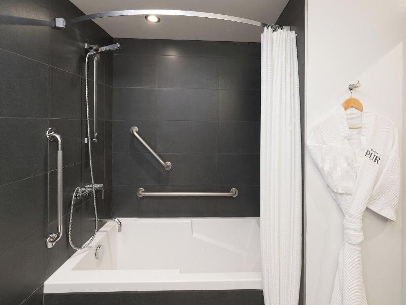Disfruta de una estancia en el Hotel PUR Quebec, a Tribute Portfolio Hotel, donde te esperan numerosas opciones de recreo. Date un chapuzón en la piscina cubierta o revitalízate en el gimnasio. Manténte conectado con el wifi gratuito y aprovecha la comodidad de los servicios de conserjería y organización de bodas. Saborea una comida en Table, nuestro restaurante, y relájate con una copa en el bar/salón. Los desayunos a la carta están disponibles todos los días (de pago). Para viajeros de negocios, ofrecemos un centro de negocios abierto las 24 horas, check-out exprés y servicios de tintorería/lavandería. ¿Planeas un evento? Nuestro hotel cuenta con más de 1300 metros cuadrados de espacio flexible para eventos, incluyendo 11 salas de reuniones. El aparcamiento propio está disponible (de pago). Nuestras 242 habitaciones con aire acondicionado ofrecen un refugio confortable. Cada habitación cuenta con frigorífico, televisión de pantalla plana con canales por cable y una cama Select Comfort con ropa de cama de primera calidad. Los baños privados incluyen artículos de tocador de diseño y secador de pelo. Ubicado cerca de la calle Saint-Jean, estamos a poca distancia de atracciones como el Centro de Convenciones de la ciudad de Quebec, el Grand Théâtre de Québec y la Place d'Youville. El Aeropuerto Internacional Jean Lesage de la ciudad de Quebec (YQB) está a unos 21 km del hotel.