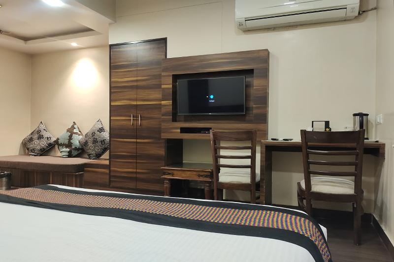 Disfruta de wifi gratis y servicios de peluquería en el Hotel Rang Mahal, en el distrito Malviya Nagar de Jaipur. El hotel ofrece un restaurante, una tienda de comestibles/ultramarinos y un bar para tus necesidades gastronómicas. Cada una de las 20 habitaciones con aire acondicionado cuenta con refrigerador, TV de pantalla plana con canales por cable y baño privado con ducha de efecto lluvia. Los servicios adicionales incluyen recepción 24 horas, personal multilingüe y consigna de equipaje. Estarás a 15 minutos en coche de Hawa Mahal y Jal Mahal, y cerca de atracciones como Jawahar Circle y World Trade Park.
