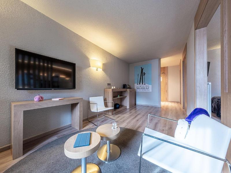 Este hotel está situado en las pistas del centro de la estación de esquí de Pas de la Casa, muy cerca de restaurantes, bares, discotecas y tiendas. Este hotel, ideal para esquiar, cuenta con un salón para relajarse, salas de conferencias y acceso a internet. Además, el hotel dispone de cafetería, bar, discoteca, restaurante y garaje. Las atractivas y espaciosas habitaciones tienen baño privado y garantizan que los visitantes puedan descansar y recuperarse del cansancio. Todas las habitaciones están bien equipadas con todo lo necesario, y se ofrecen servicios de habitaciones y lavandería como servicios adicionales. Puedes disfrutar del desayuno en el buffet y del almuerzo y la cena con un menú del día. También se pueden atender necesidades dietéticas especiales. El hotel también cuenta con un Spa, un rincón de relajación del que todos los huéspedes del hotel pueden disfrutar de forma gratuita (uso exclusivo para mayores de 14 años).