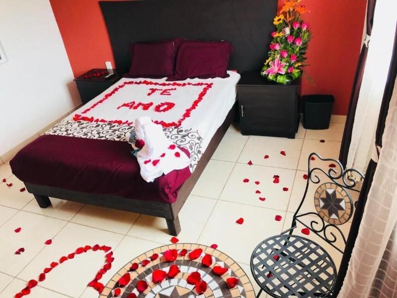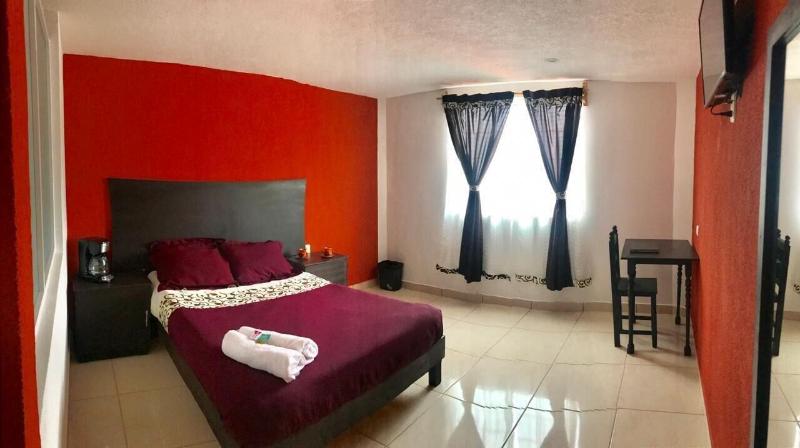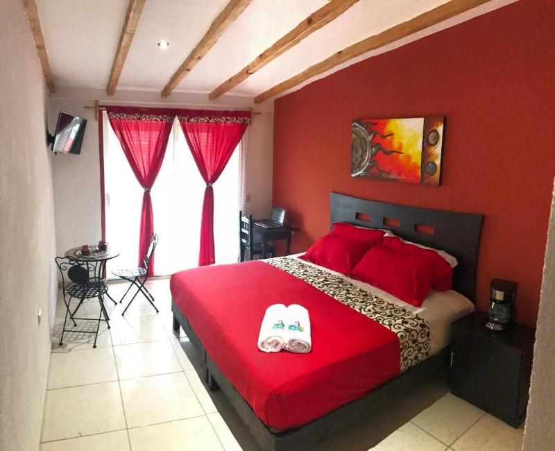 Disfruta de impresionantes vistas desde la terraza y el jardín en Hotel & Suites Cerro Rojo, una encantadora posada ubicada en el centro histórico de Tlatlauquitepec. Aprovecha el wifi gratuito, la sala de TV compartida y la práctica asistencia turística para la compra de entradas. Saborea la deliciosa cocina mexicana en el restaurante del hotel, Azotea Cerro Rojo, que cuenta con un bar y vistas al jardín, o bien, come algo rápido en la cafetería. La posada ofrece 15 habitaciones equipadas con televisores de pantalla plana, programación por cable y cómodas camas con edredones de plumas y sábanas de algodón egipcio. Los baños incluyen duchas, artículos de tocador de diseño y secadores de pelo. Las comodidades adicionales incluyen recepción 24 horas, consigna de equipaje, servicio de lavandería y estacionamiento sin costo. Hotel & Suites Cerro Rojo se encuentra a 1 minuto en auto del Zócalo De Tlatlauquitepec y a 10 minutos de la Cascada de Puxtla.