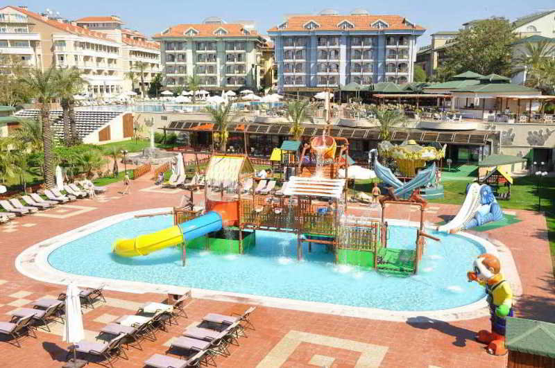 Este complejo vacacional fué inaugurado en 2004 y se compone de un edificio principal y otros anejos. Está rodeado por un jardín muy grande y tiene cuatro plantas en las que se reparten un total de 373 habitaciones, 8 de ellas elegantes suites. En el imponente hall de entrada hay un área de recepción abierta las 24 horas del día, donde se le ofrece servicio de cambio de divisa, caja fuerte y ocho ascensores. También tiene a su disposición una sala de televisión, una cafetería, un pequeño supermercado, varias tiendas, un salón de peluquería, un bar muy acogedor y un restaurante climatizado a la carta con terraza exterior y con sillas altas para los niños disponibles. Se tiene en cuenta a los más pequeños, para los cuales hay un club infantil (de 4 a 11 años) y un parque por el que podrán jugar y corretear a sus anchas. Aquellos que viajen por motivos de negocios o de trabajo tienen varias salas de conferencias a su disposición. Para completar las prestaciones ofrecidas, tendrá a su disposición servicio de atención médica. Podrá aparcar su vehículo en el garaje del hotel.