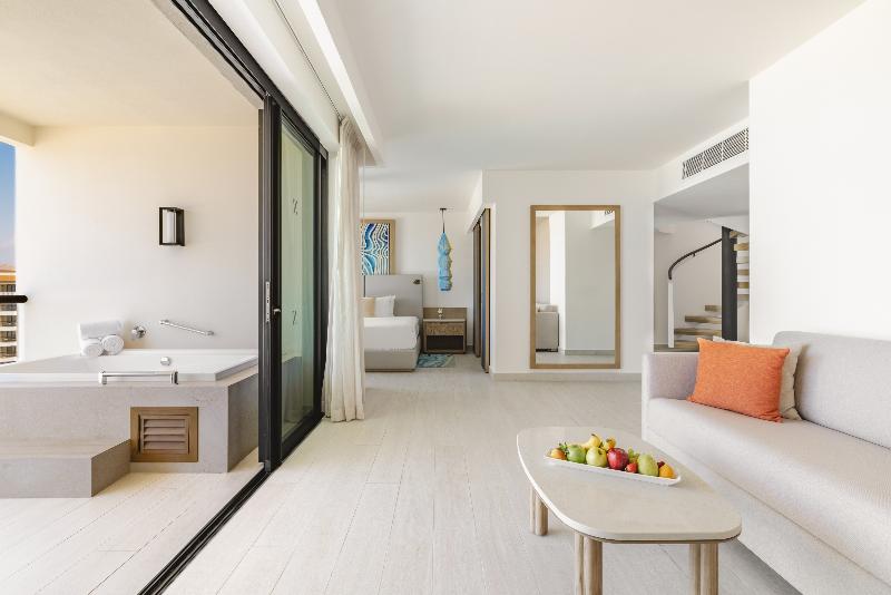 El Hyatt Ziva Los Cabos- Todo Incluido, una lujosa propiedad estilo art déco, se encuentra en la Zona Hotelera de San José del Cabo, a poca distancia en coche de Puerto Los Cabos, El Dorado Golf Club y hermosas playas como Costa Azul y Palmilla. Disfruta de una sesión de mimos en el spa de servicio completo, que ofrece masajes, tratamientos corporales y faciales. Aprovecha las amplias instalaciones recreativas, que incluyen cuatro piscinas al aire libre, cuatro jacuzzis y un parque acuático gratuito. El hotel también ofrece wifi gratis, servicios de conserjería y servicio de niñera (con cargo). Cada una de las 591 habitaciones con aire acondicionado cuenta con una estación de conexión para iPod, un televisor LCD, una cama con pillow-top, edredones de plumas y sábanas de algodón egipcio, y un balcón privado. También disfrutarás de wifi gratis y programación por satélite. Las tarifas con todo incluido cubren comidas y bebidas en los siete restaurantes de la propiedad, incluido el restaurante italiano, Zaffiro. Una cafetería ofrece snacks y también hay servicio a la habitación las 24 horas. Múltiples bares y lounges, incluido un bar junto a la piscina, ofrecen bebidas refrescantes. Los servicios adicionales incluyen una estación de computadoras, check-out exprés, servicios de tintorería/lavandería y un gran centro de conferencias con 18 salas de reuniones. El servicio de transporte de ida y vuelta al aeropuerto está disponible por un suplemento, y se proporciona estacionamiento con valet gratuito en el lugar.