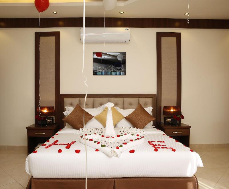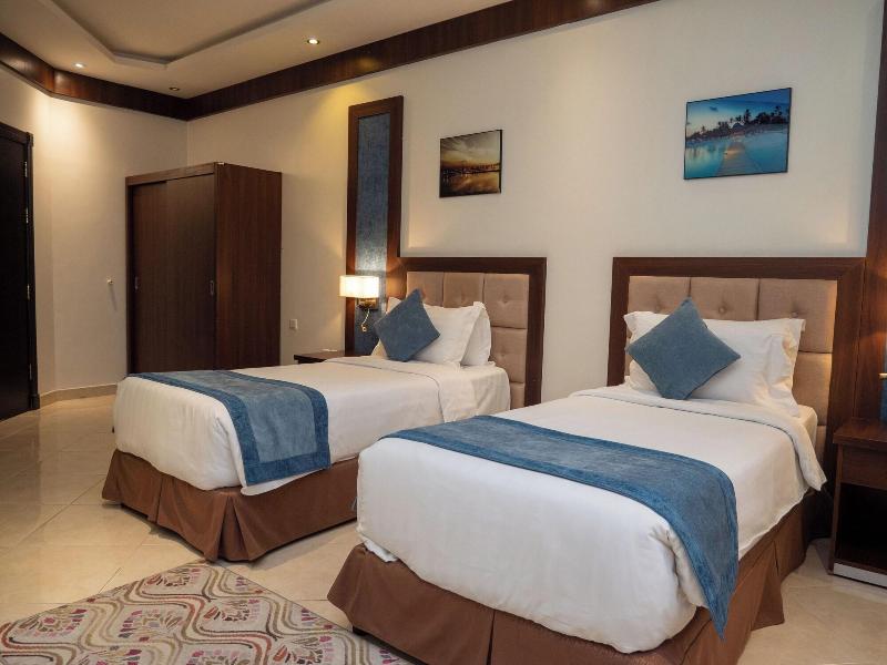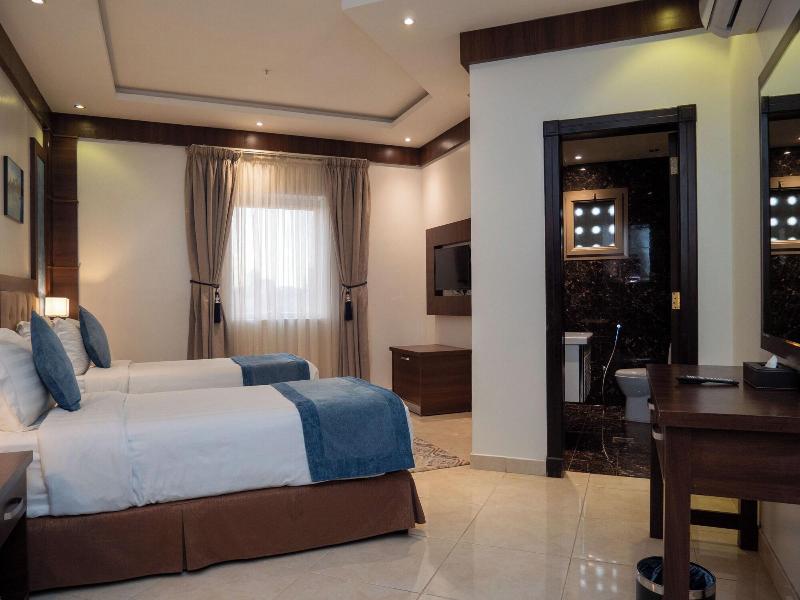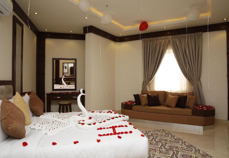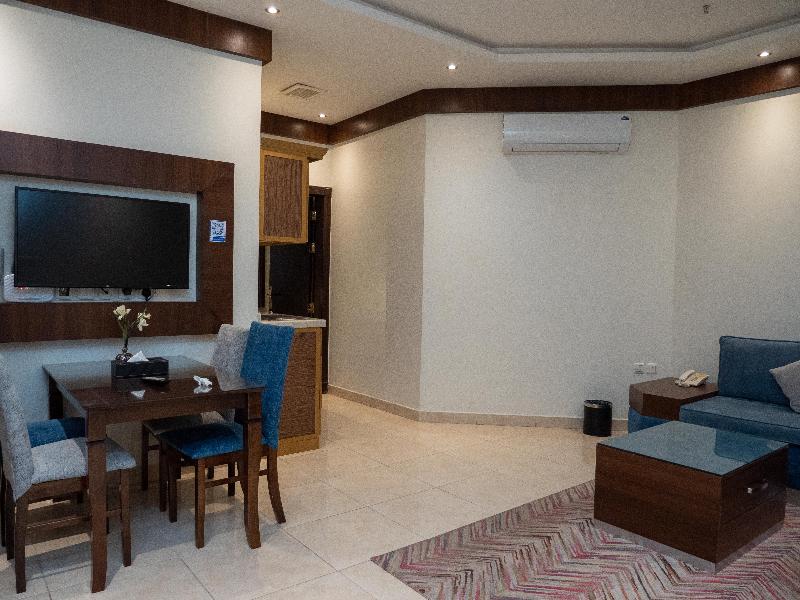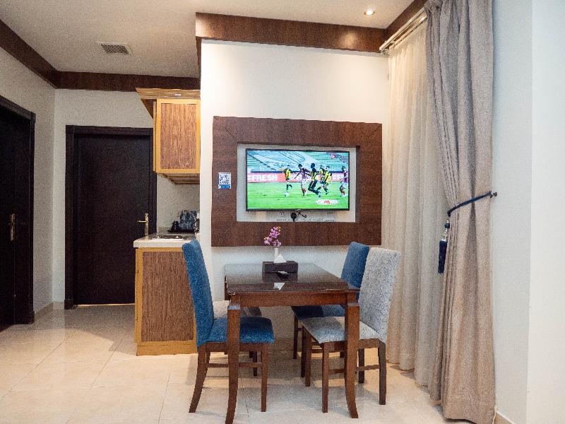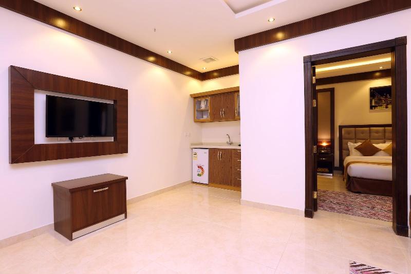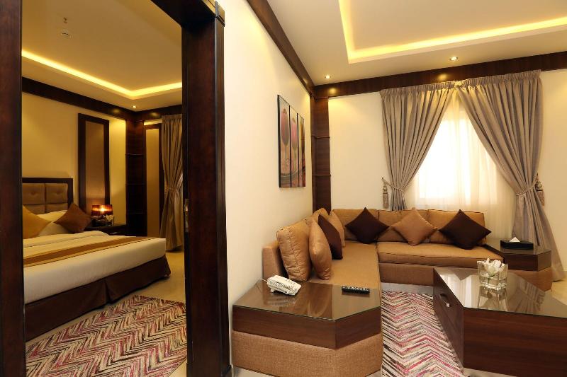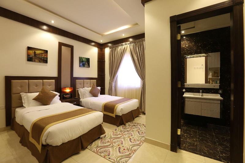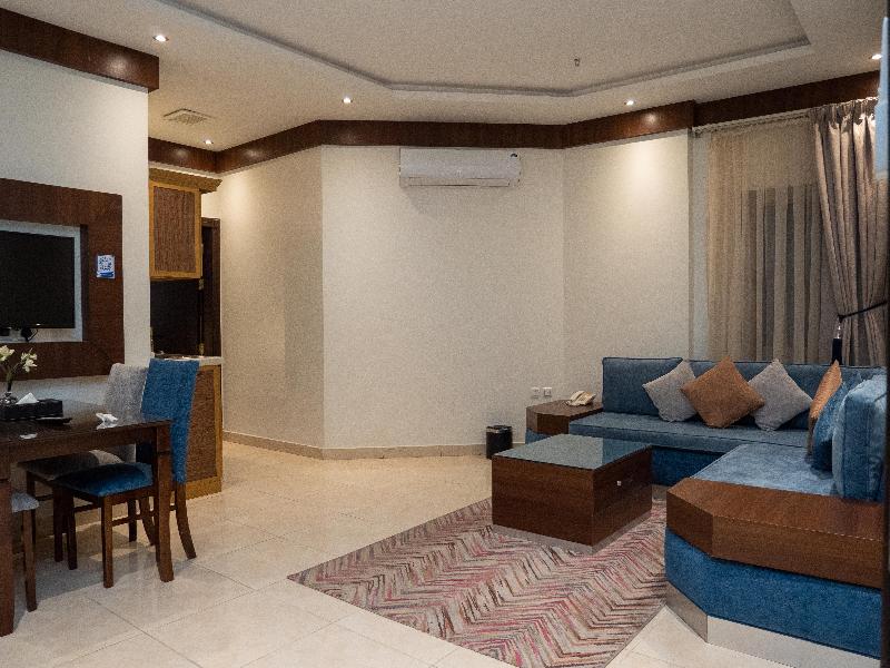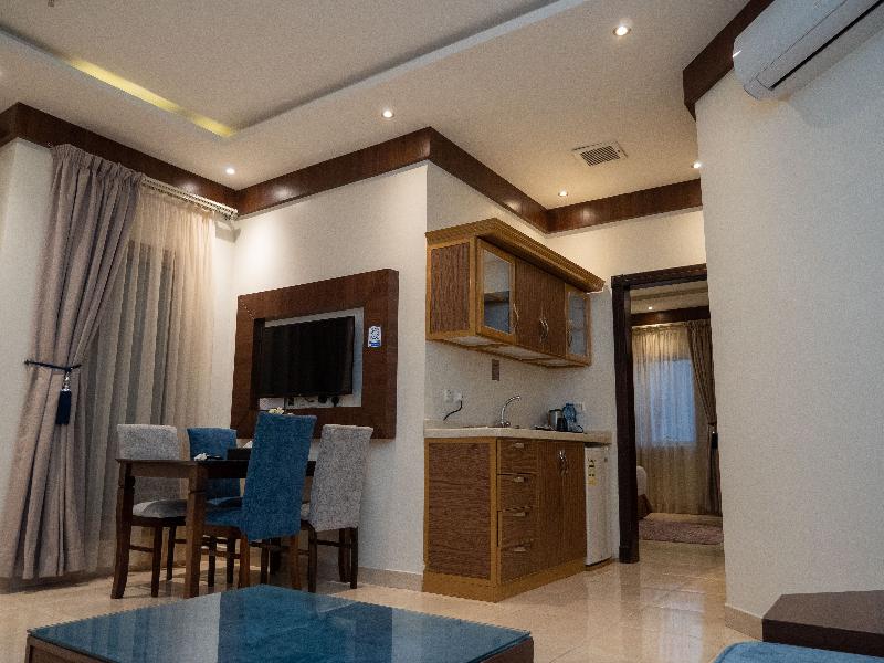 Disfruta de wifi gratis y un salón para banquetes en el Innyar Hotel, ubicado en el distrito Ar Rabi de Riad. Comienza tu día con un desayuno continental (de pago) y disfruta de un aperitivo en la tienda de delicatessen del hotel. Este apartotel te ofrece un centro de negocios abierto las 24 horas, servicios de tintorería/lavandería y recepción 24 horas. Hay servicio de transporte al aeropuerto (con suplemento). Relájate en una de las 74 habitaciones con aire acondicionado, equipadas con TV LCD con canales por satélite, baño privado con bañera profunda y ducha de efecto lluvia, caja fuerte para laptop y sala de estar independiente. El Innyar Hotel está convenientemente ubicado a 15 minutos en coche del Riyadh Park Mall y Roshn Front, y ofrece fácil acceso al Aeropuerto Internacional King Khaled (RUH).