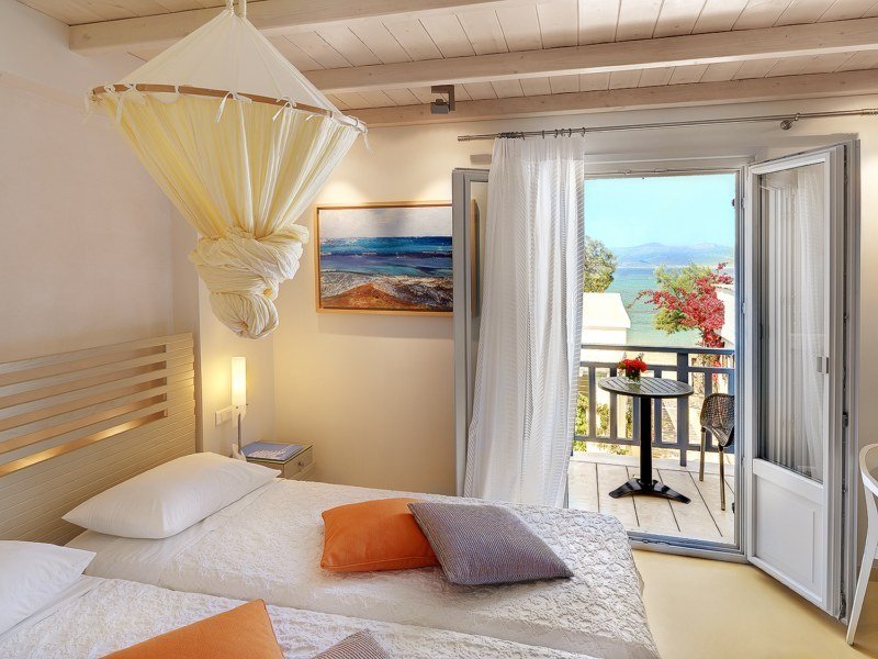 Situado en la espectacular playa de Agia Anna, en la conocida localidad costera de Agia Anna, en la costa occidental de Naxos, en las proximidades de la ciudad de Naxos (Chora), la capital de la isla.|El hotel está construido según el estilo arquitectónico tradicional de las Cícladas.Ofrece una maravillosa selección de servicios y hospitalidad genuina, lo que garantiza a sus huéspedes una estancia relajante y elegante alojamiento en un hotel en Naxos Grecia.