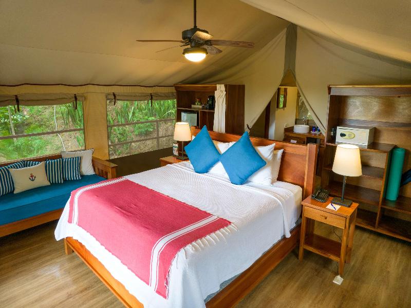 Disfruta de una relajante estancia en Isla Chiquita Glamping Hotel en Paquera. Ubicado en la playa, estarás a pocos pasos de Playa Chino y Playa Langosta, y a un corto trayecto de Playa Mango y Playa Órganos. Deléitate con la cocina internacional en uno de los dos restaurantes del hotel, incluido 'Donde Tía Nora', y relájate con una bebida en el bar, el salón o el bar de la piscina. Comienza el día con un desayuno a la carta de cortesía. Cada una de las 18 habitaciones, decoradas de forma individual, cuenta con minibar, cafetera exprés, baño privado con ducha, artículos de aseo gratuitos y secador de pelo, caja fuerte, sala de estar independiente, teléfono y wifi gratuito. El hotel también ofrece un spa con todos los servicios, servicios para bodas y asistencia para la compra de tours y entradas.