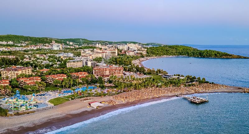 Enclavado en un tranquilo pinar, este hotel ofrece acceso directo a una playa privada de arena y guijarros entre dos pintorescas bahías. Situado a aproximadamente 30 km del centro de Alanya, el hotel ofrece un cómodo servicio de transporte (de pago). Con un edificio principal y siete bungalows, este confortable hotel dispone de 300 habitaciones. Las comodidades incluyen un vestíbulo con recepción, ascensor, bar en el vestíbulo, minimercado, peluquería, tiendas, sala de televisión, sala de juegos, discoteca, bar, cibercafé y cuatro restaurantes (tres a la carta, abiertos del 20 de abril al 20 de septiembre). Los niños de 4 a 12 años pueden disfrutar del club infantil, la piscina y el parque infantil. También hay servicio de lavandería. Las habitaciones disponen de teléfono de línea directa, televisión por satélite/cable, caja fuerte y aire acondicionado/calefacción central. La extensa zona ajardinada cuenta con dos piscinas, una piscina infantil independiente, un bar junto a la piscina y varios toboganes. Una terraza con tumbonas y sombrillas ofrece un amplio espacio para relajarse. Una piscina cubierta ofrece una alternativa para los días de mal tiempo. Por un suplemento, los huéspedes pueden disfrutar de la sauna, el baño turco y los servicios de masaje. Las actividades incluyen tenis de mesa, voleibol de playa, dardos, petanca y tiro con arco. El hotel también ofrece programas de entretenimiento, incluyendo clases de aeróbic. En la playa se pueden practicar diversos deportes acuáticos, como motos acuáticas, buceo, vela y banana boat, a través de proveedores externos (de pago). Para cualquier consulta, puedes enviar un correo electrónico a info@justinianohotels. com.