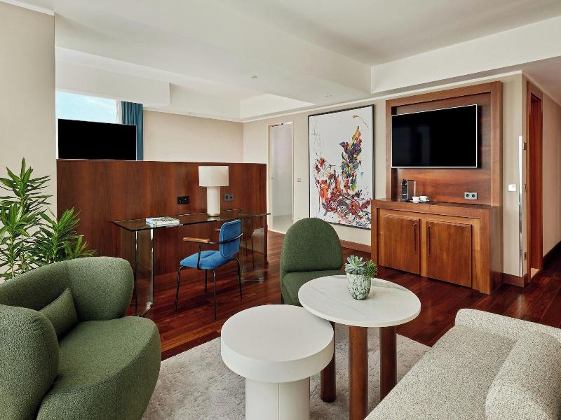 Si decides alojarte en JW Marriott Hotel Frankfurt, disfrutarás de una céntrica ubicación en Fráncfort, a pocos pasos de MyZeil y a 10 minutos a pie de Römerberg. Además, este hotel para familias se encuentra a 0, 9 km de Teatro de la ópera Alte Oper y a 1, 7 km de Frankfurt Christmas Market. . Apreciarás las instalaciones de ocio, que incluyen un centro de bienestar, una piscina cubierta y una sauna. Encontrarás también servicio de cuidado infantil (de pago), tiendas en el alojamiento y un vestíbulo con chimenea. . Te sentirás como en tu propia casa en cualquiera de las 218 habitaciones con estación de conexión para iPod y televisión LED. Descansa como nunca en una cama con edredón de plumas y ropa de cama de alta calidad. Para los momentos de ocio, tendrás un televisor con canales digitales y conexión a Internet por cable y wifi gratis. El baño parcialmente abierto con bañera y ducha independientes está provisto de bañera profunda y cabezal de ducha tipo lluvia. . Come algo en El Rayyan, uno de los 2 restaurantes de este hotel, o simplemente llama al servicio de habitaciones las 24 horas. Apaga la sed con tu bebida favorita en el bar o lounge. Se ofrece un desayuno completo entre semana de 06:30 a 11:00, con un coste adicional. . Tendrás conexión a Internet por cable gratis, un centro de negocios abierto las 24 horas y check-in exprés a tu disposición.