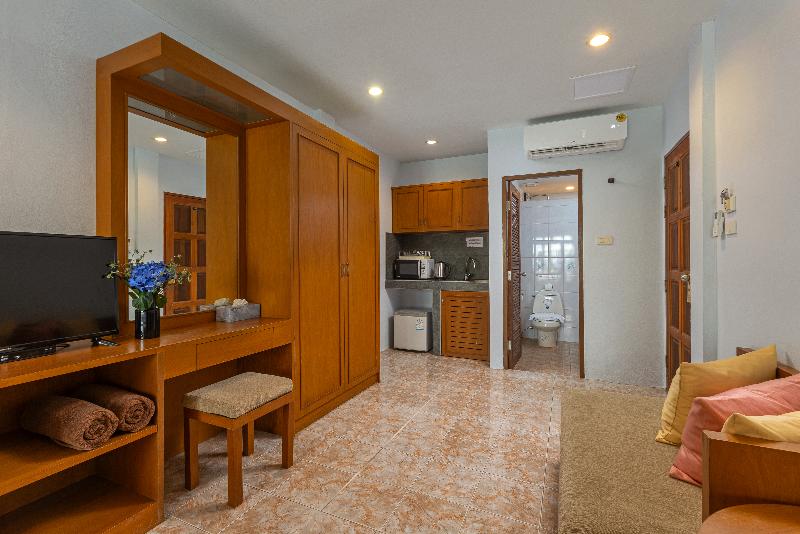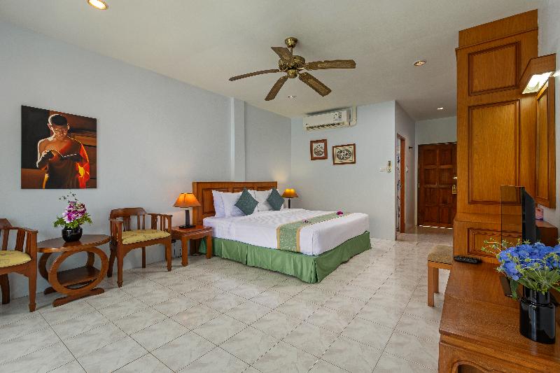 Con vistas a Kamala Beach, este hotel en forma de L ofrece estudios con vistas al mar y terrazas privadas, la mayoría de las cuales dan directamente a la piscina. Con una superficie de entre 35 y 40 m², cada estudio cuenta con una cama extragrande, una pequeña cocina con nevera y microondas, un escritorio, amplio espacio de almacenamiento y una mesa de comedor. Las comodidades incluyen aire acondicionado, TV vía satélite, teléfono y acceso a internet, y un baño privado con una ducha grande. Hay camas supletorias y cajas fuertes disponibles.