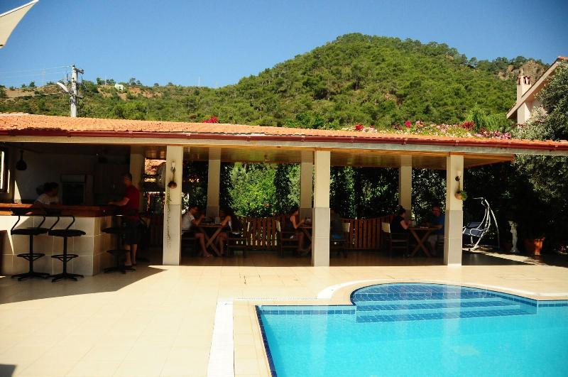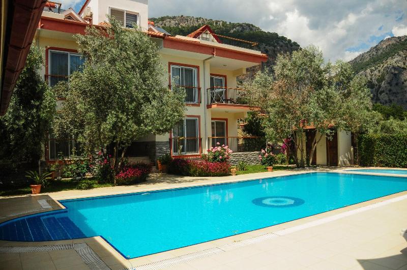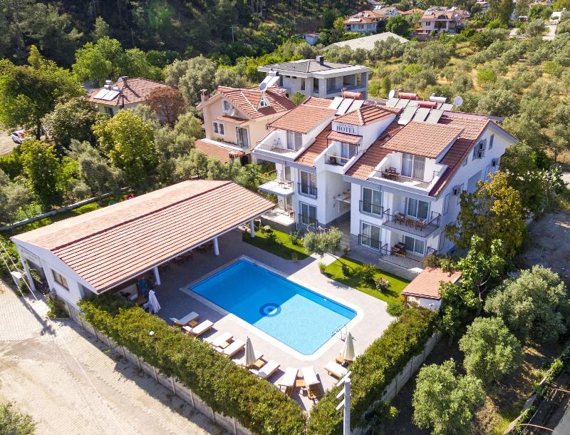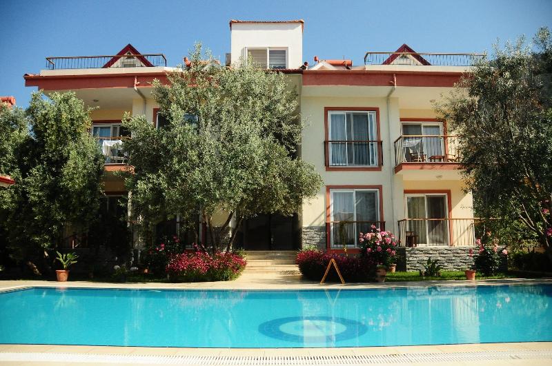 Ubicado en Fethiye, Kerem Apart Hotel Gocek se encuentra en una zona rural, a 10 minutos en coche de Gocek Marina y la Tumba Rupestre de Deadala. Este hotel está a 22 km de Calis Beach y a 30, 1 km de Sarigerme Beach. Aprovecha las opciones de ocio, como una piscina al aire libre, o disfruta de las vistas desde la terraza y el jardín. Entre los servicios adicionales de este hotel se incluyen Wi-Fi gratis y servicio de conserjería. El servicio de transporte (de pago) te llevará a la playa o al centro comercial cercanos. Tendrás a tu disposición servicios de tintorería/lavandería, recepción 24 horas y atención multilingüe. Se ofrece servicio de transporte al aeropuerto (ida y vuelta) de pago (disponible las 24 horas), así como aparcamiento sin asistencia gratuito. Disfruta de una comida en el restaurante que sirve a los huéspedes de Kerem Apart Hotel Gocek, o pásate por la tienda de delicatessen. Come con otros huéspedes en la recepción gratuita. Relájate con tu bebida favorita en el bar o lounge o en el bar junto a la piscina. Siéntete como en casa en una de las 12 habitaciones con aire acondicionado, minibar y televisor de pantalla plana. Descansa en una cama con edredón de plumas y ropa de cama de alta calidad. Dispondrás de conexión a Internet wifi gratis para mantenerte conectado. El baño cuenta con ducha y secador de pelo.
