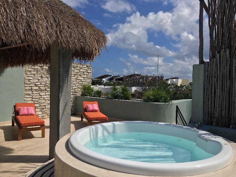 Disfruta de un oasis de belleza y tranquilidad lejos de la fiesta y el caos, entre la selva y el mar. Contamos con exclusivos clubes de playa, y podrás llegar a donde quieras en minutos con una de nuestras bicicletas disponibles para los huéspedes. Nuestro hotel boutique de lujo de 4 estrellas combina modernidad con espiritualidad; restaura tu equilibrio mental, físico y emocional con nuestras clases de yoga sin costo adicional. Relájate en nuestra piscina rodeada de exuberante vegetación o disfruta de impresionantes vistas desde nuestra piscina en la azotea, perfecta para admirar la puesta de sol. Déjate consentir durante nuestra hora social con bebidas y bocadillos. O vive experiencias locales, como clases de tortillas y recorridos por el pueblo.