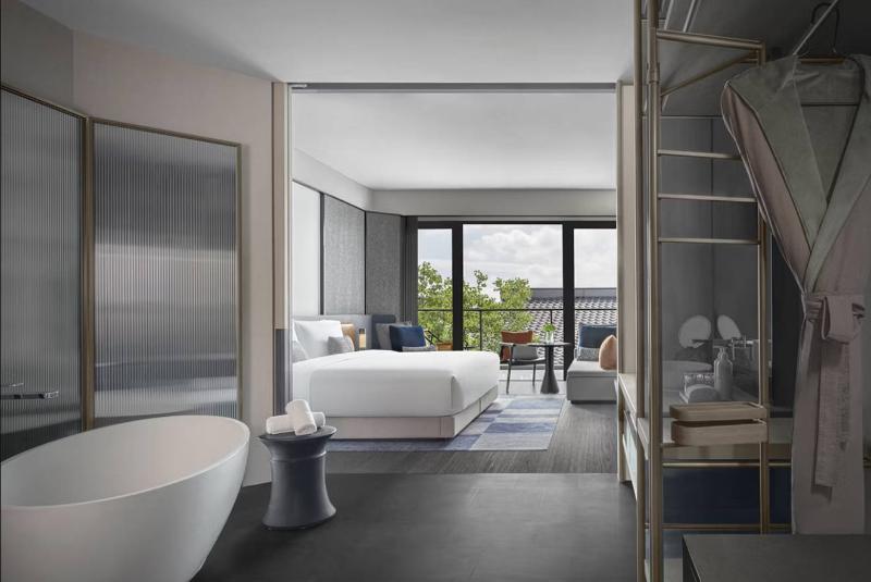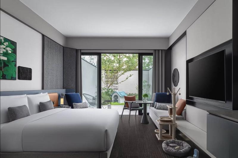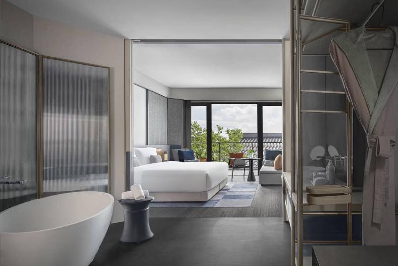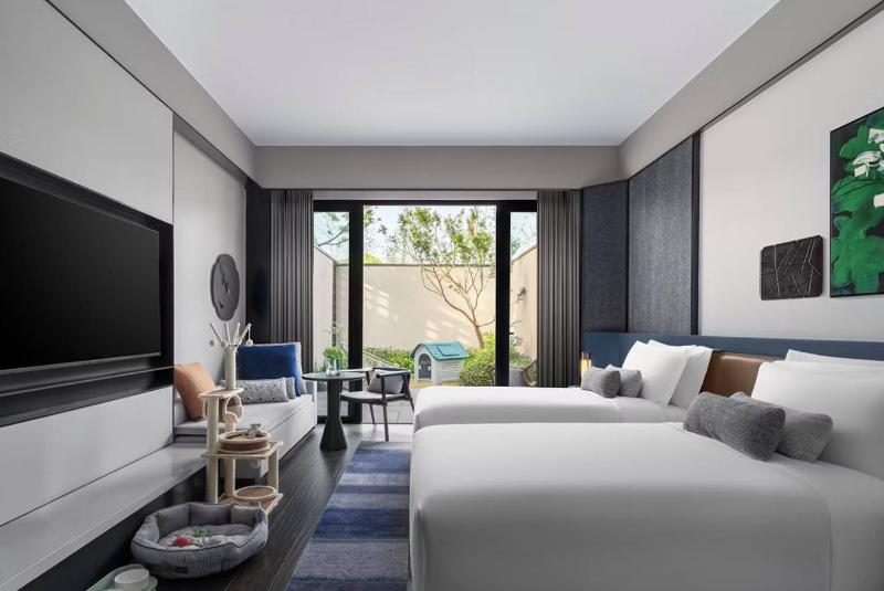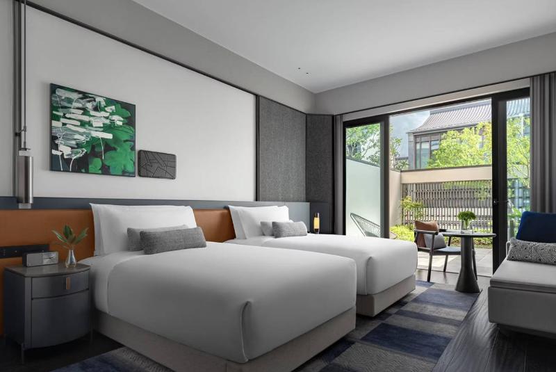 El Kimpton Bamboo Grove Suzhou, heredando el legado del Bamboo Grove Hotel, ofrece una experiencia única que abarca diseño, arte, gastronomía y mucho más. Ubicado en el casco antiguo de Suzhou, el hotel tiene vistas a un foso de 2500 años de antigüedad, lo que proporciona un escape tranquilo. Convenientemente situado a solo 50 metros de la estación de metro Nan Yuan Norte (Línea 5), el hotel ofrece fácil acceso a los renombrados jardines de Suzhou, incluyendo el Pabellón de las Olas Crecientes y el Jardín del Maestro de las Redes. Un corto trayecto de 10 minutos en coche te lleva a lugares de interés como la calle Pingjiang, la calle Shantang, el Museo de Suzhou (diseñado por I. M. Pei), el Jardín del Administrador Humilde y el Jardín del Bosque de los Leones.